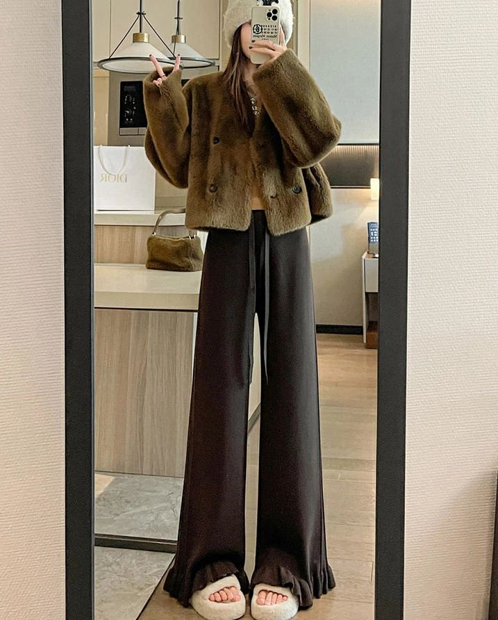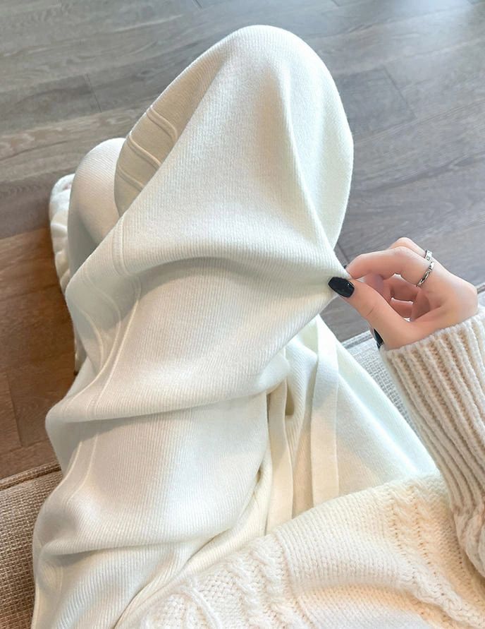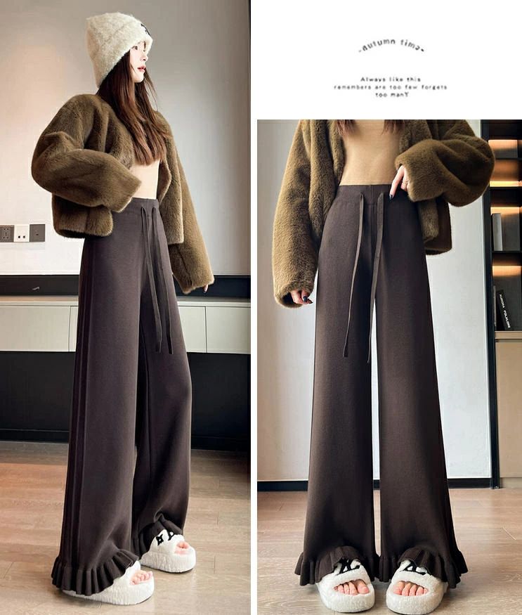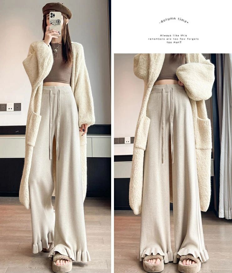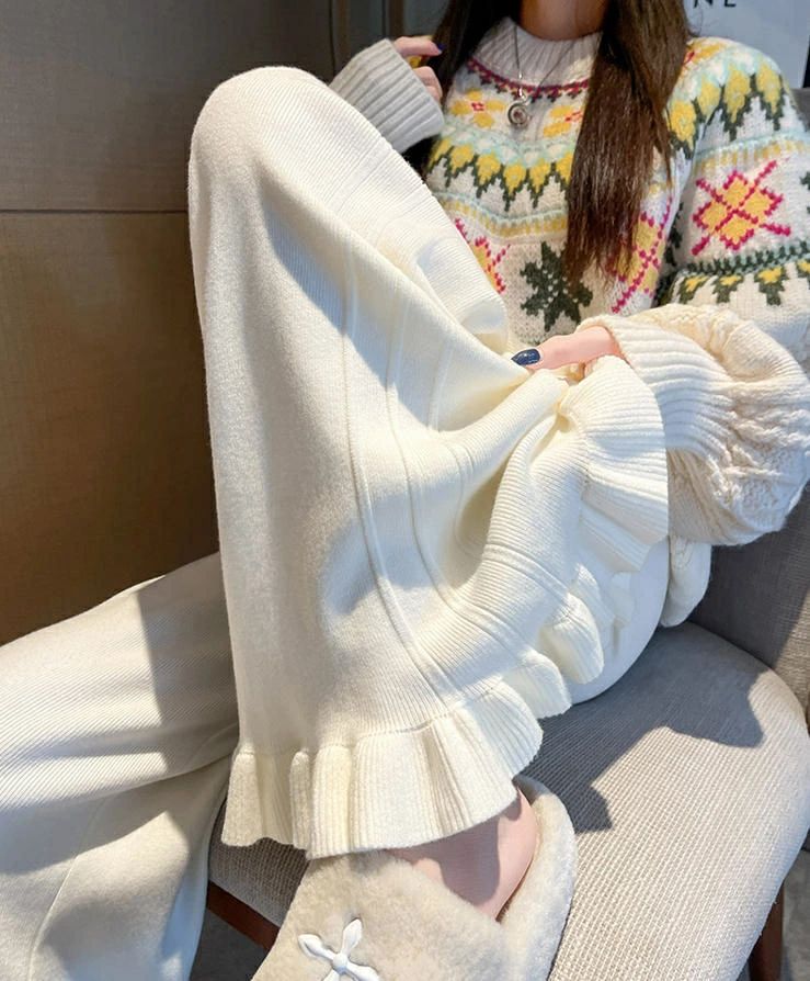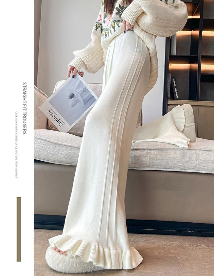 パンツ レディース ニットパンツ 裾フ レディースファッション 超目玉商品 ブラック アイボリー ベージュ ブラウン S M L XL