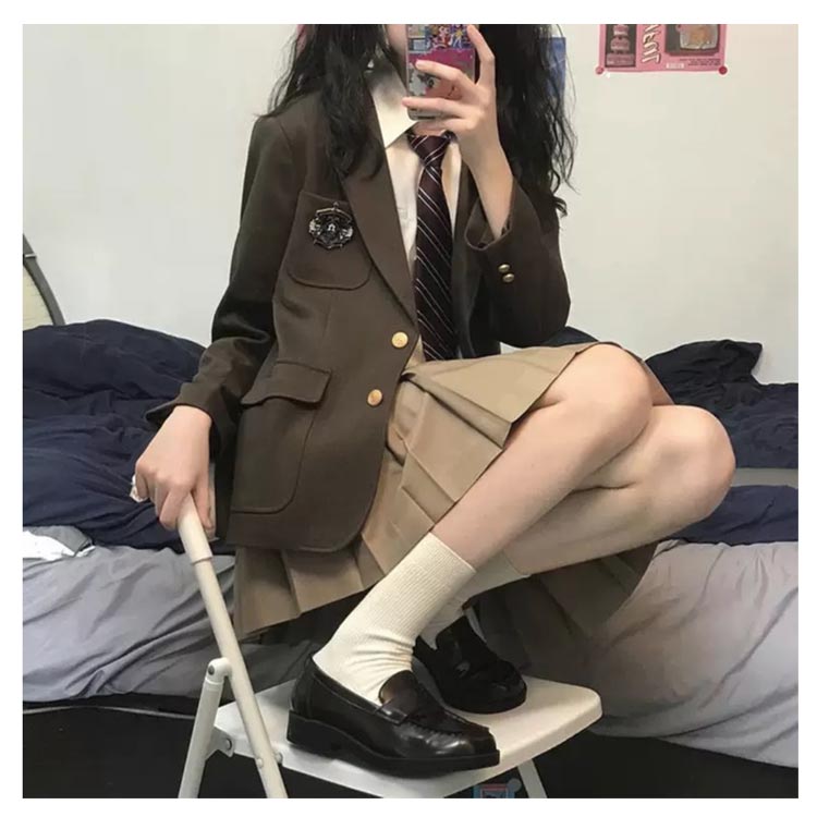 女子 ブラウン 制服 韓国 卒服 スク 学生服 スカート 人気 4点セットブラウン 4点セットブラック S M L XL 2L 3L 4L