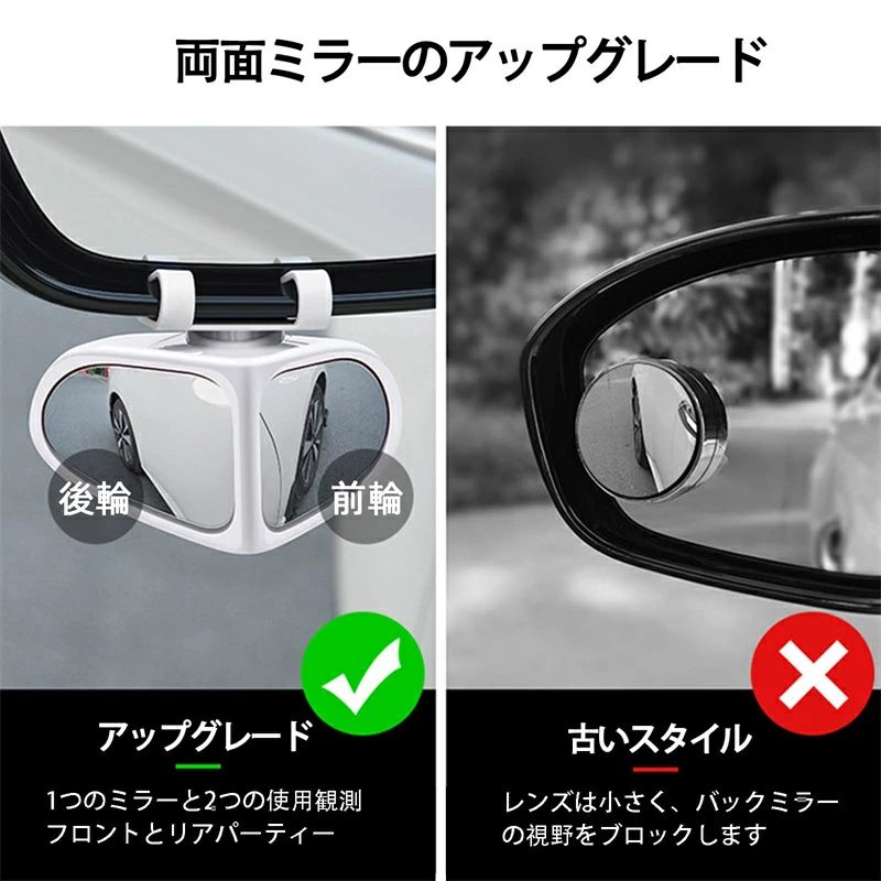 車 補助ミラー 左 右 2個セット 車 レッド ホワイト ブラック ブルー