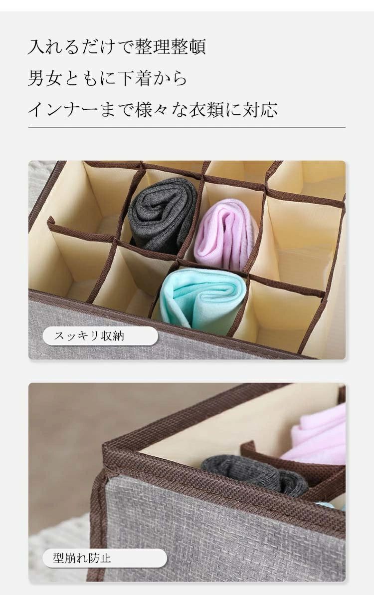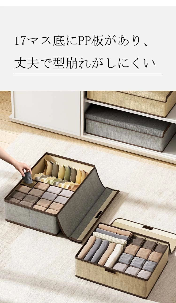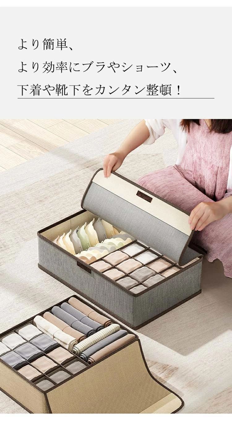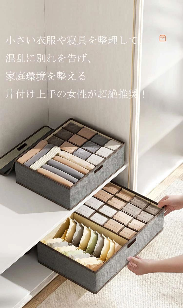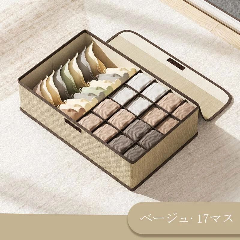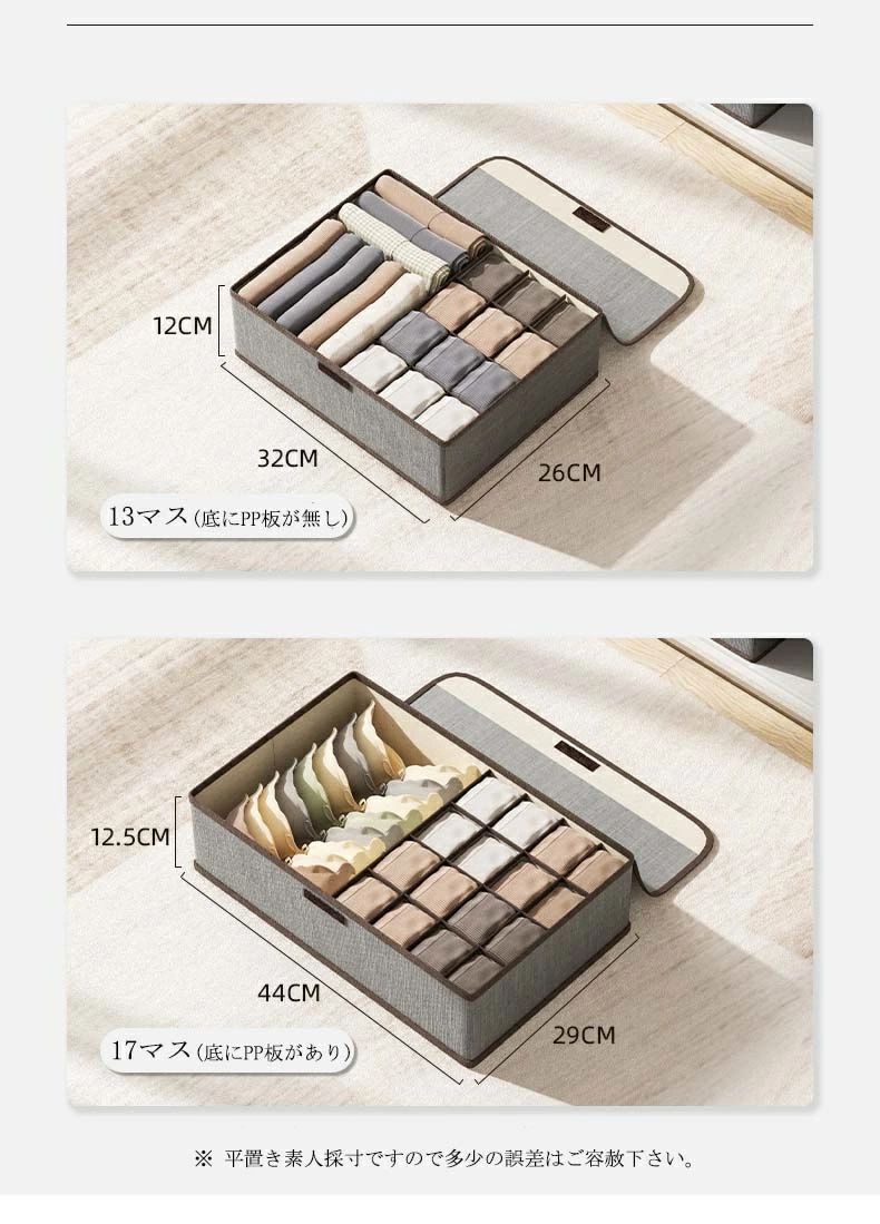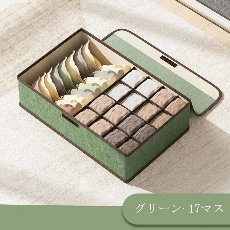 仕切りケース 蓋付き 収納ボックス 布 グレー(17マス) グレー(13マス) ネイビー(17マス) ネイビー(13マス) ベージュ(17マス) ベージュ(13マス) グリーン(17マス) グリーン(13マス)