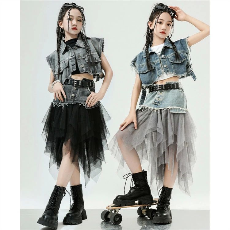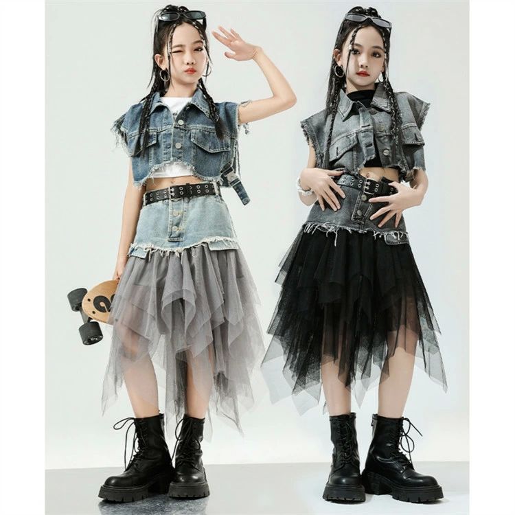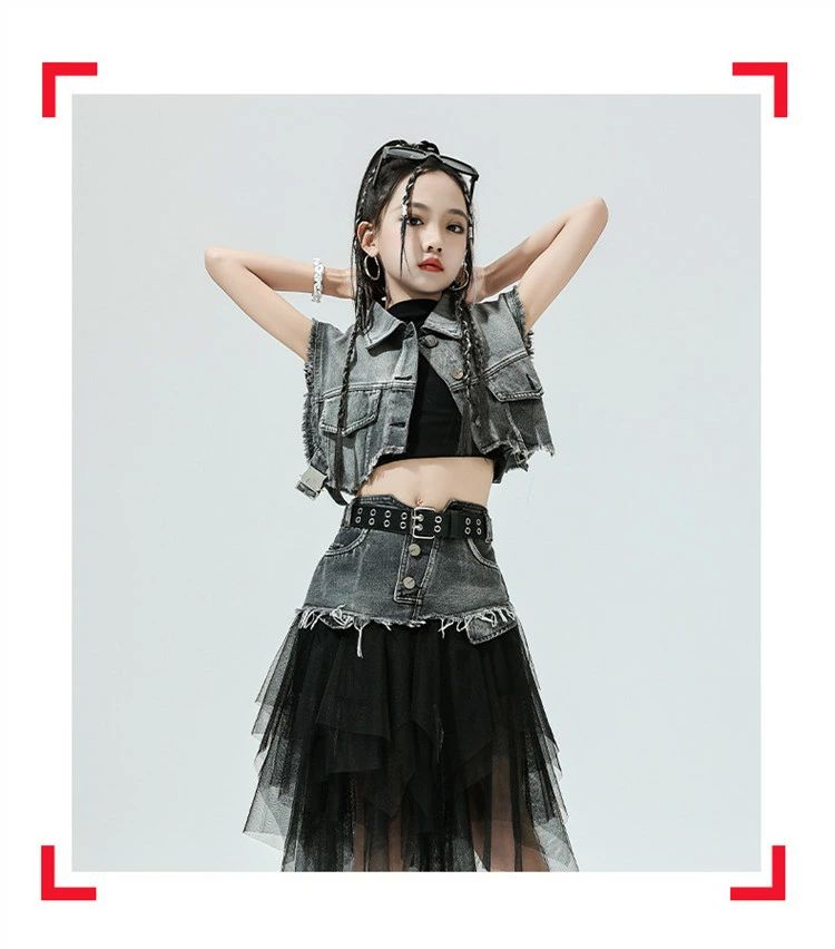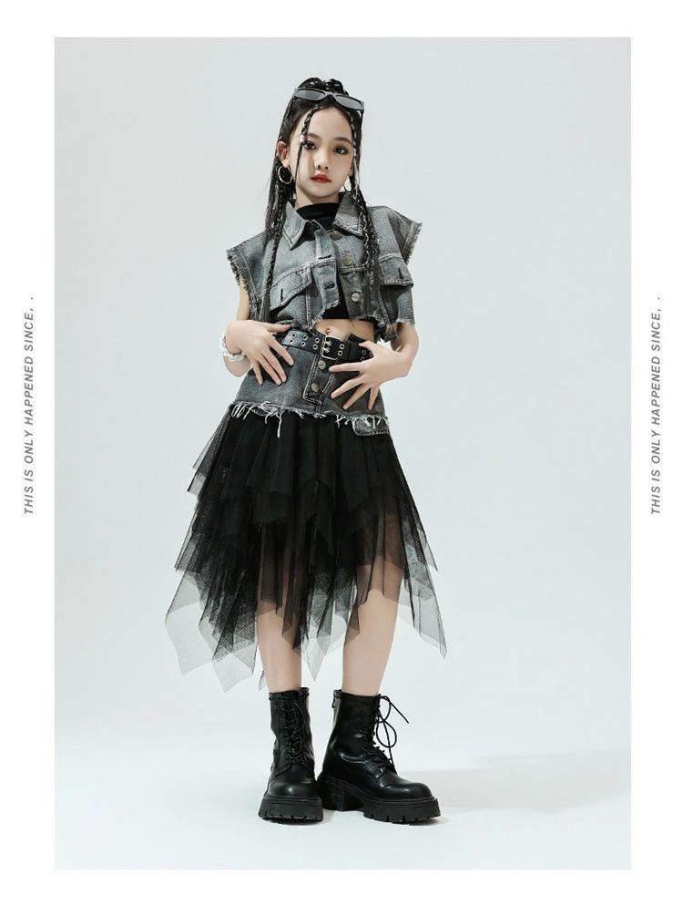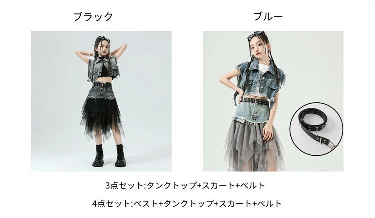 デニム ベスト 上下セット ダンス衣装 キッズ ベビー マタニティ 早い者勝ち ブラック3点セット ブルー3点セット ブラック4点セット ブルー4点セット 110cm 120cm 130cm 140cm 150cm 160cm 170cm 180cm