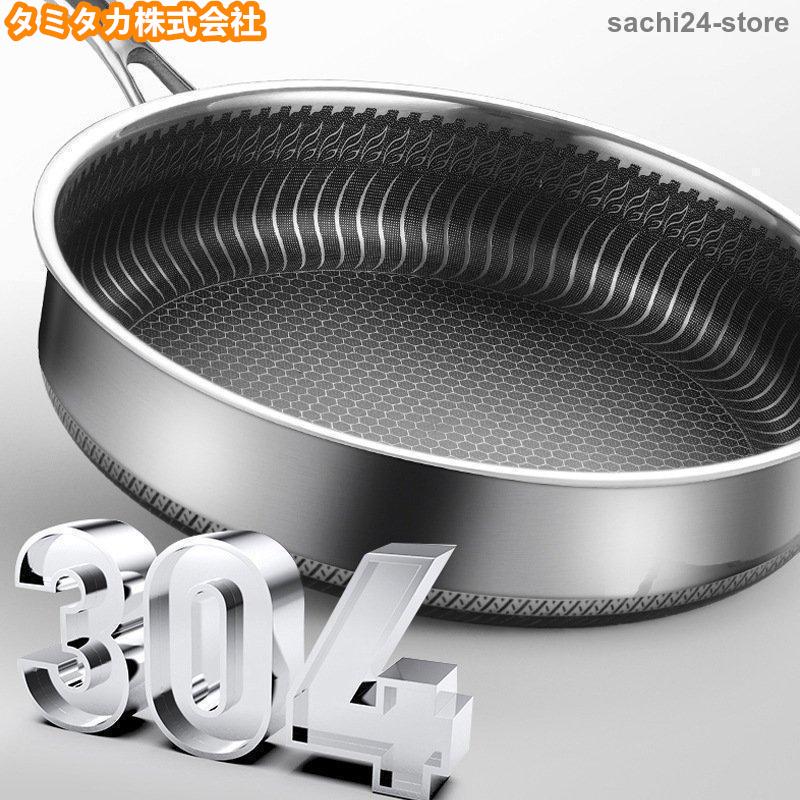 焦げ付き防止304ステンレス鋼フライパ 20cm 24cm 26cm 28cm 30cm