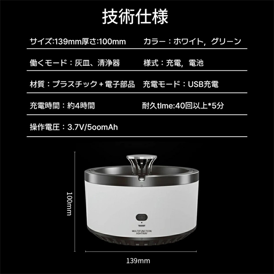 空気清浄用灰皿 空気清浄機 煙草 タバ ホビー 超目玉商品 グリーン ホワイト 電池タイプ 充電タイプ