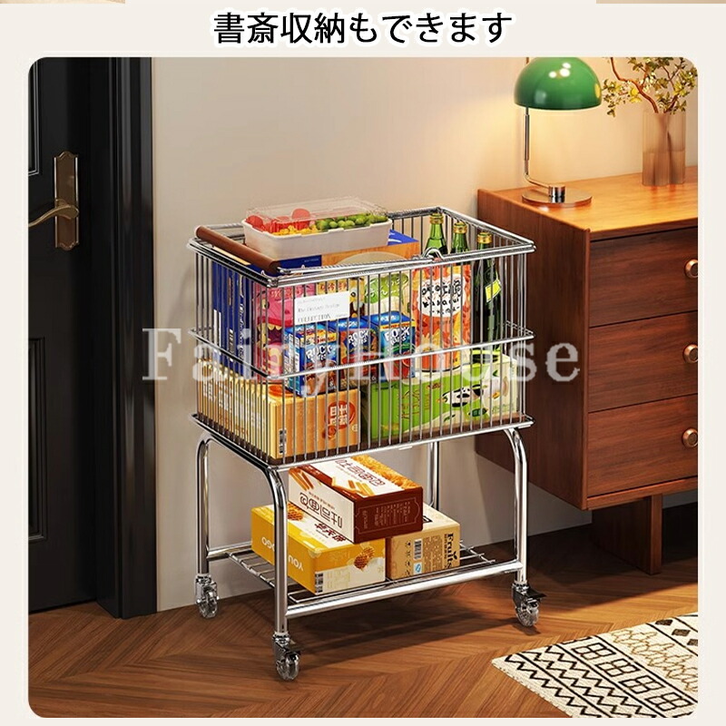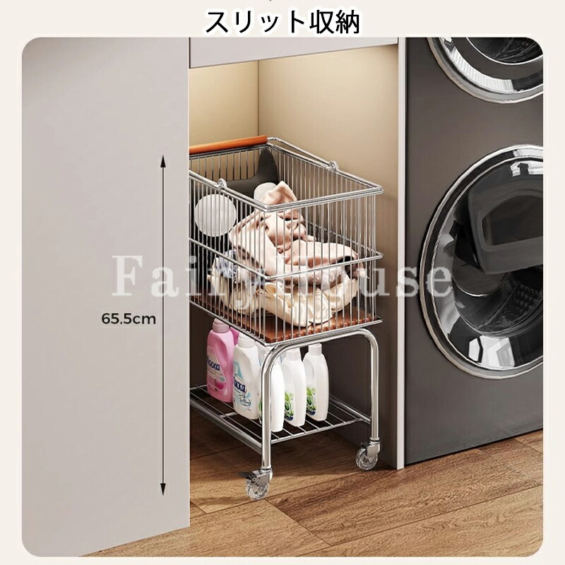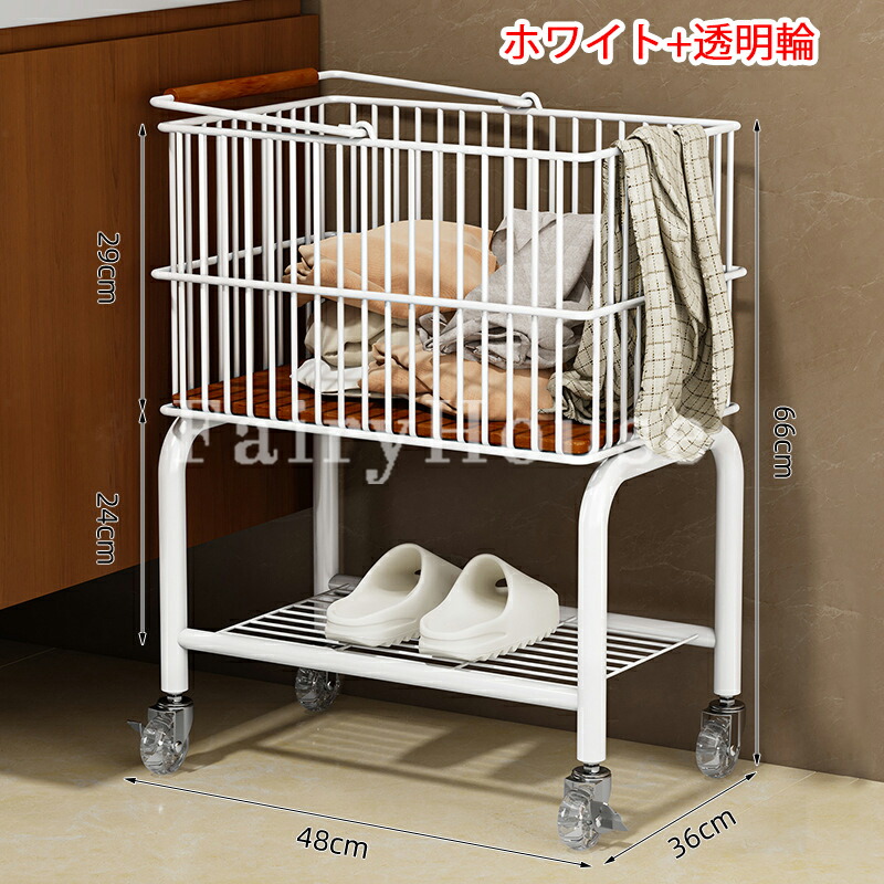 ランドリートロリー 2段ワイヤーバスケ シルバー+ブラック輪 ホワイト+ブラック輪 シルバー+透明輪 ホワイト+透明輪