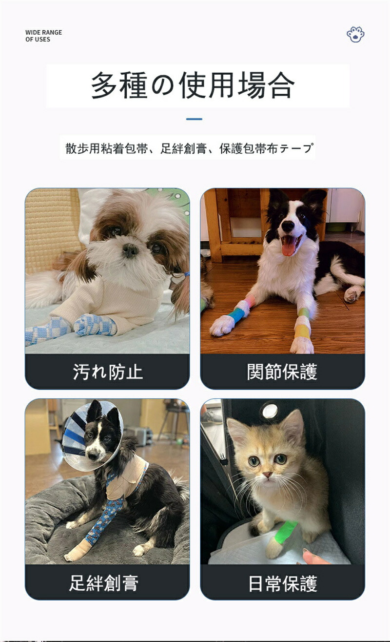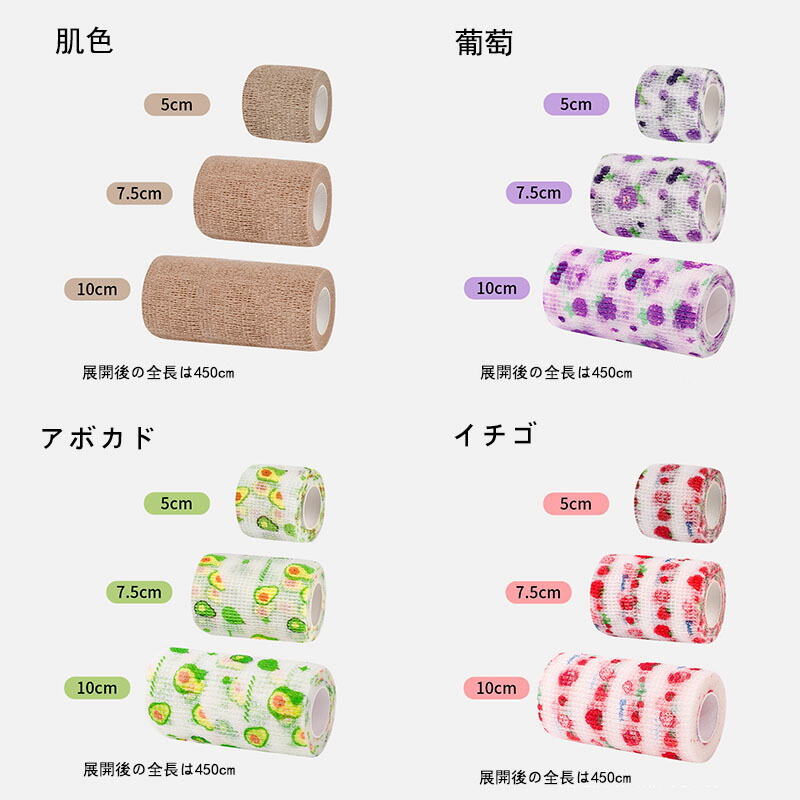 犬用 猫用 ペット用 粘着包帯 2巻セ 肌色 葡萄 アボカド イチゴ グリーン イエロー レッド ブルー 5cm*450cm(2巻) 7.5cm*450cm(2巻) 10cm*450cm(2巻)