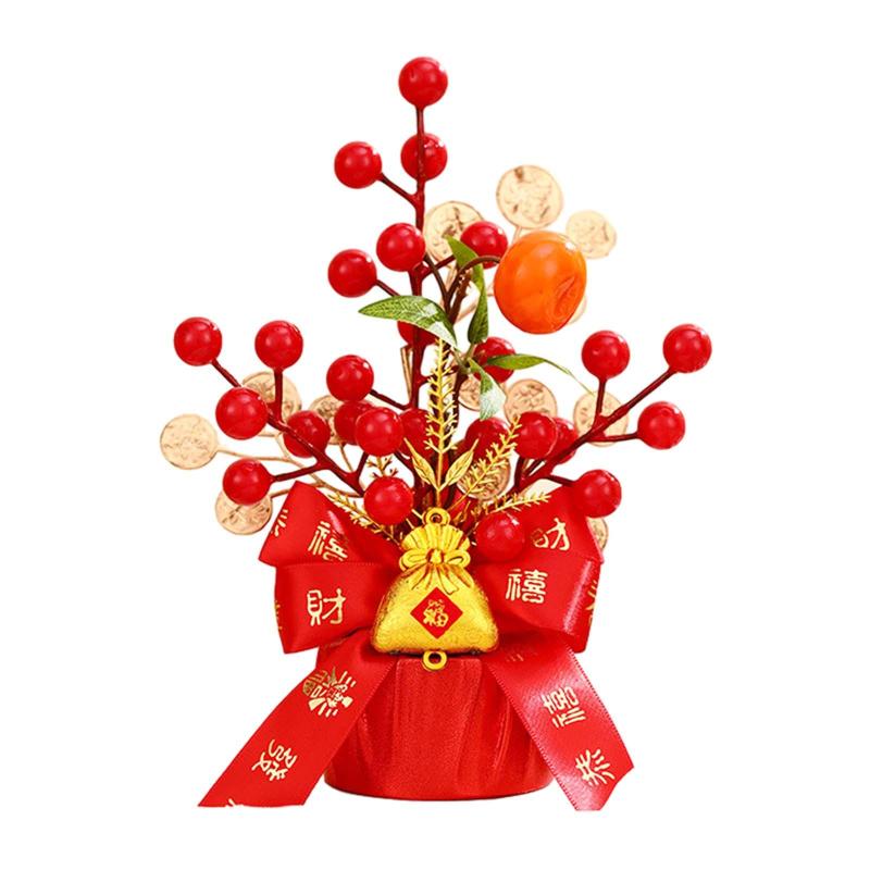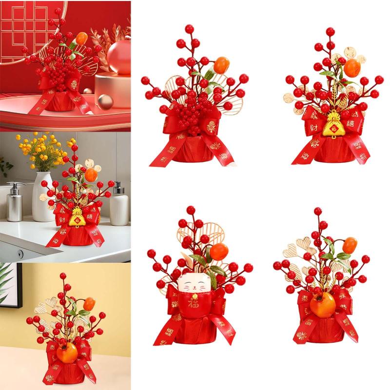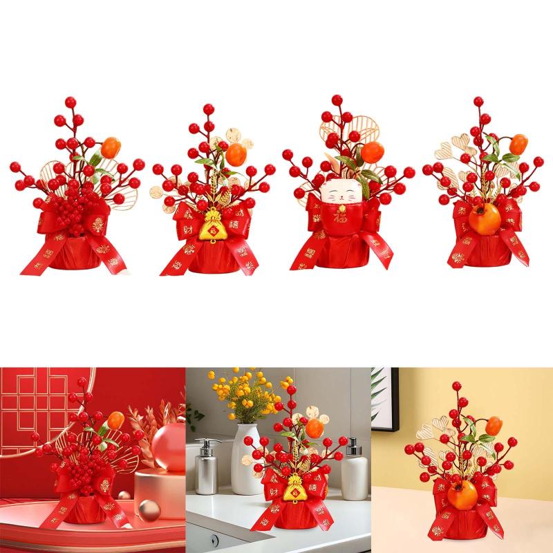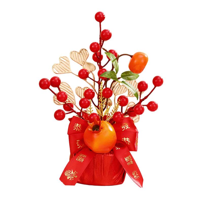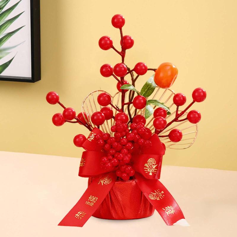 中国の旧正月装飾造花祝福バケツデスクギ ベリー ラッキーポーチ 猫 ザクロ