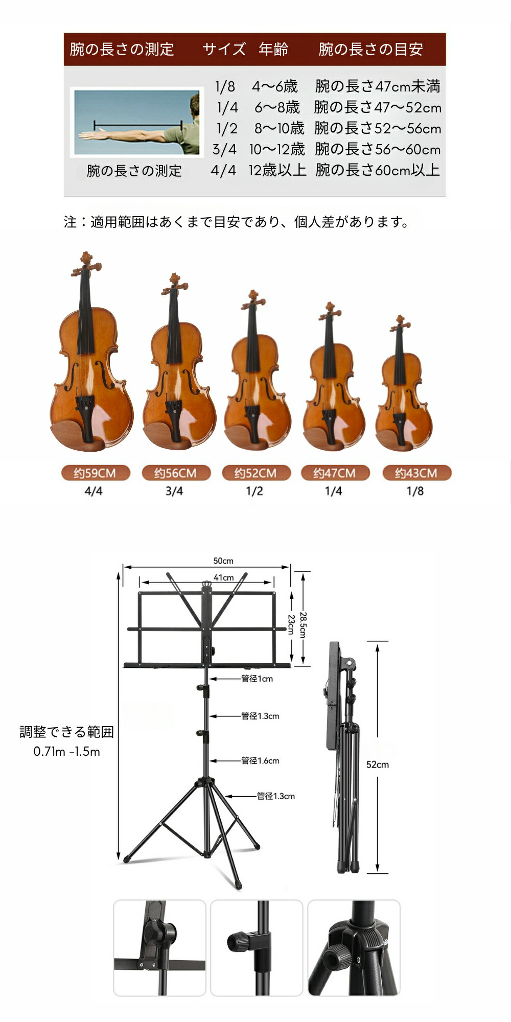 ヴァイオリン バイオリン 初心者セット 1/8 1/4 1/2 3/4 4/4