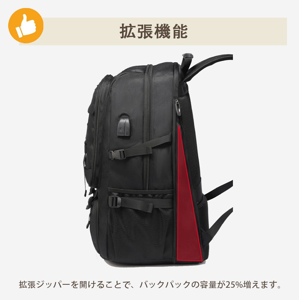 リュックサック 大容量 50L 60L 拡張機能 ビジネスリュック 通勤バッグ リュック ラップトップバック バックパック 撥水 USB充電ポート付き 靴収納 耐久性 メンズ 旅行 多機能 アウトドア