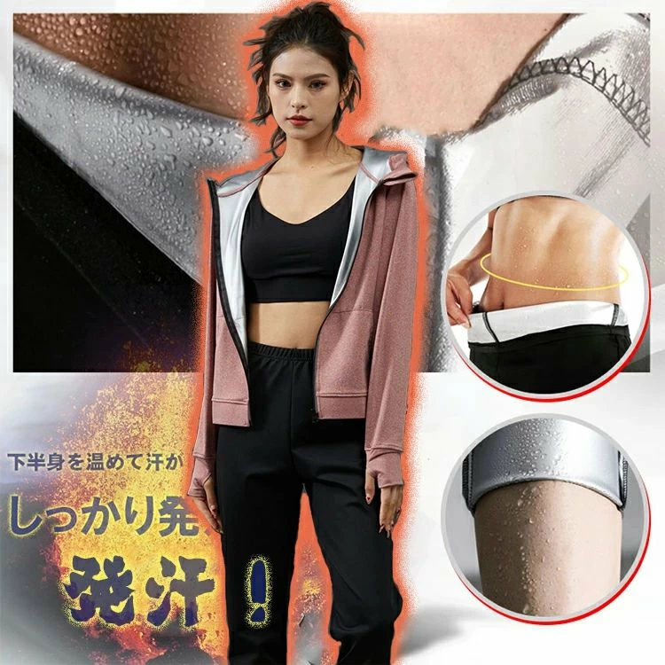 サウナスーツ レディース 大きいサイズ バッグ 小物 ブランド雑貨 続々登場 ピンク パーカー パープル パーカー ピンク上下セット パープル上下セット S M L XL 2XL 3XL 4XL