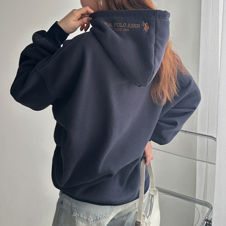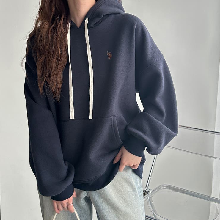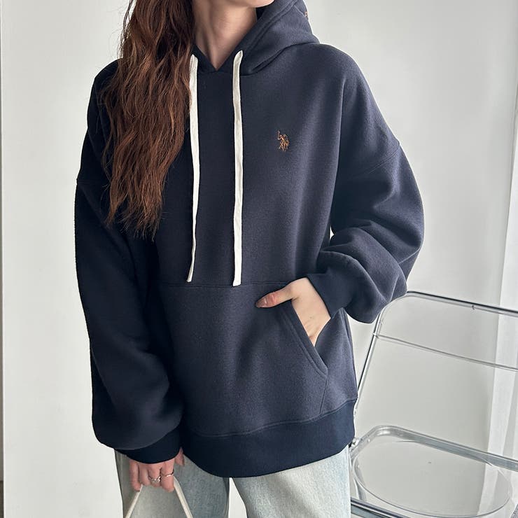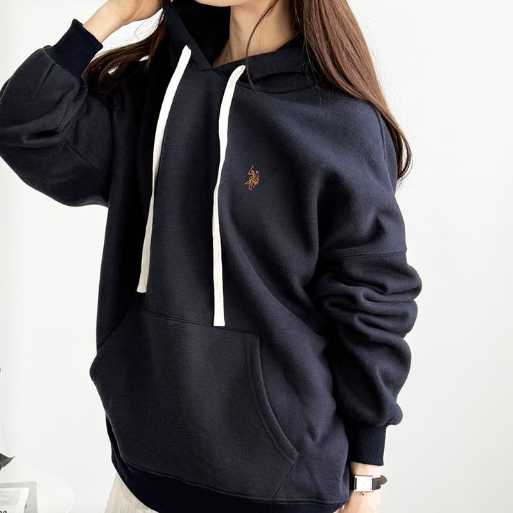 GeeRA フード刺しゅう裏起毛パーカー トップスパーカー