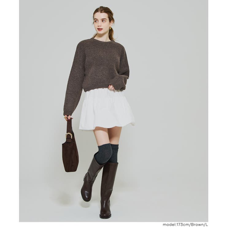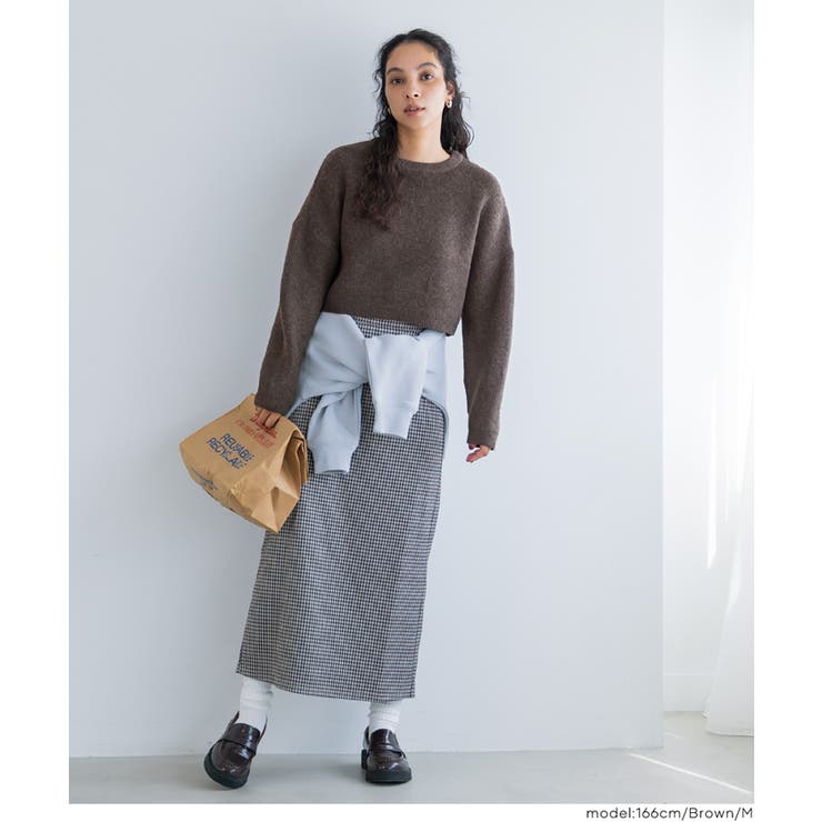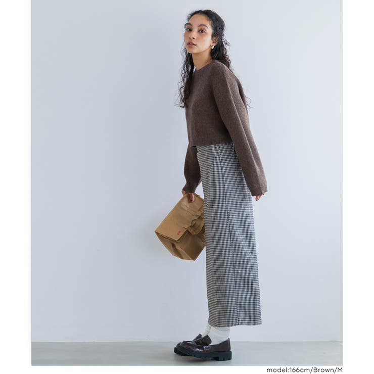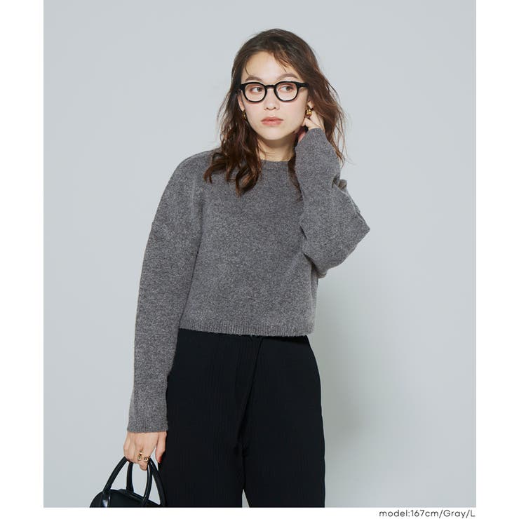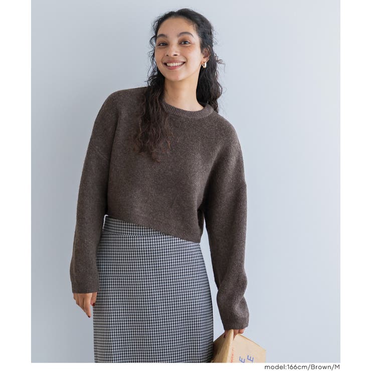 coca 縮絨ニットクロップド丈トップ トップス ニット セーター セーター 早い者勝ち [S] [M] [L] [Brown] [Gray] [Lt.Pink]