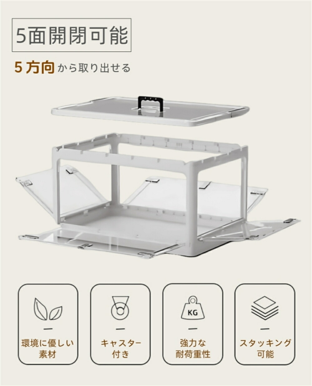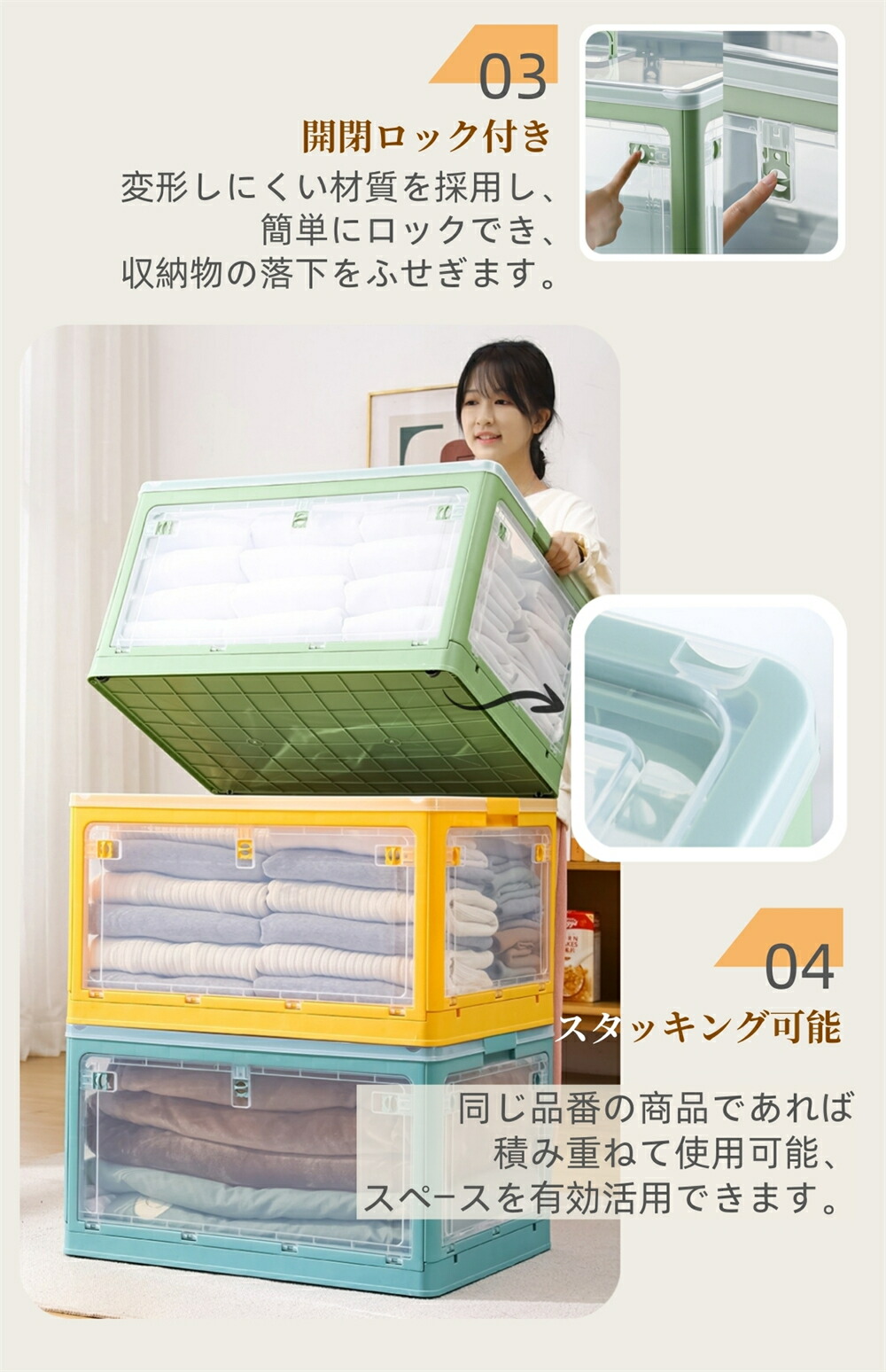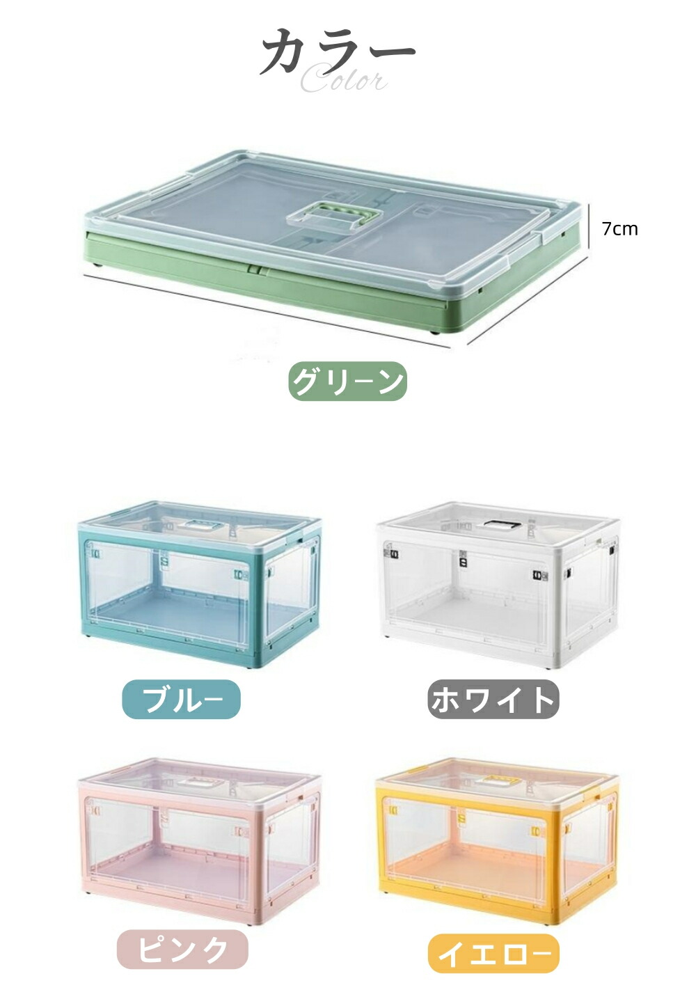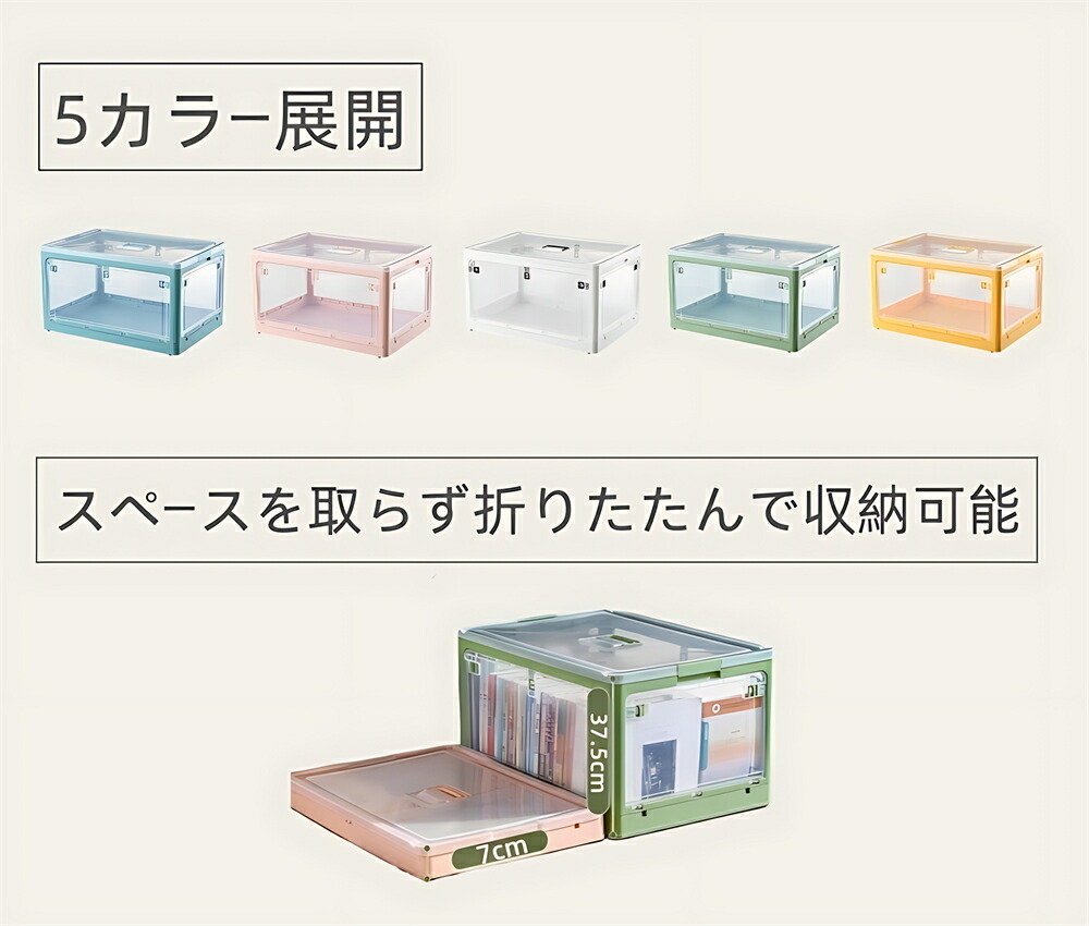 収納ボックス 5面開閉 1~3個組 蓋 S-28L(40.5*29*24cm) M-40.5L(47*35*24.5cm) L-56L(51.5*36.5*30.5cm) ホワイト ピンク グリーン イエロー ブルー