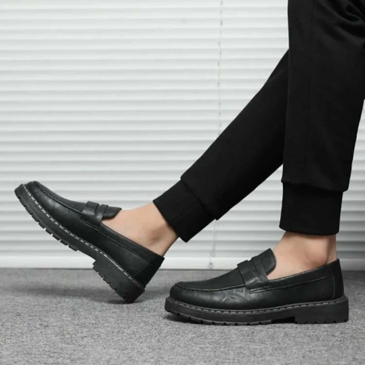 ローファー メンズ 歩きやすい シューズ 通勤 通学 ビジネス カジュアル ヒール 厚底 スリッポン 紳士 学生 男性 レザー 黒 ビジネスシューズ フォーマル靴 ブラック