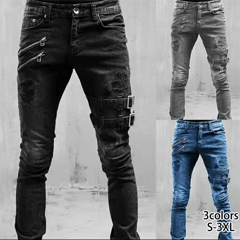 ダメージ スキニー ジーンズ メンズ ズボン パンツ 新登場! S M L XL 2XL 3XL ブルー ブラック グレー