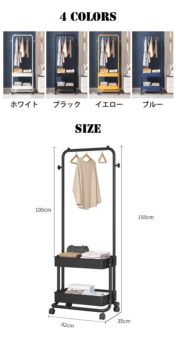 ハンガーラックおしゃれ スリム バスケ ホワイト ブラック イエロー ブルー