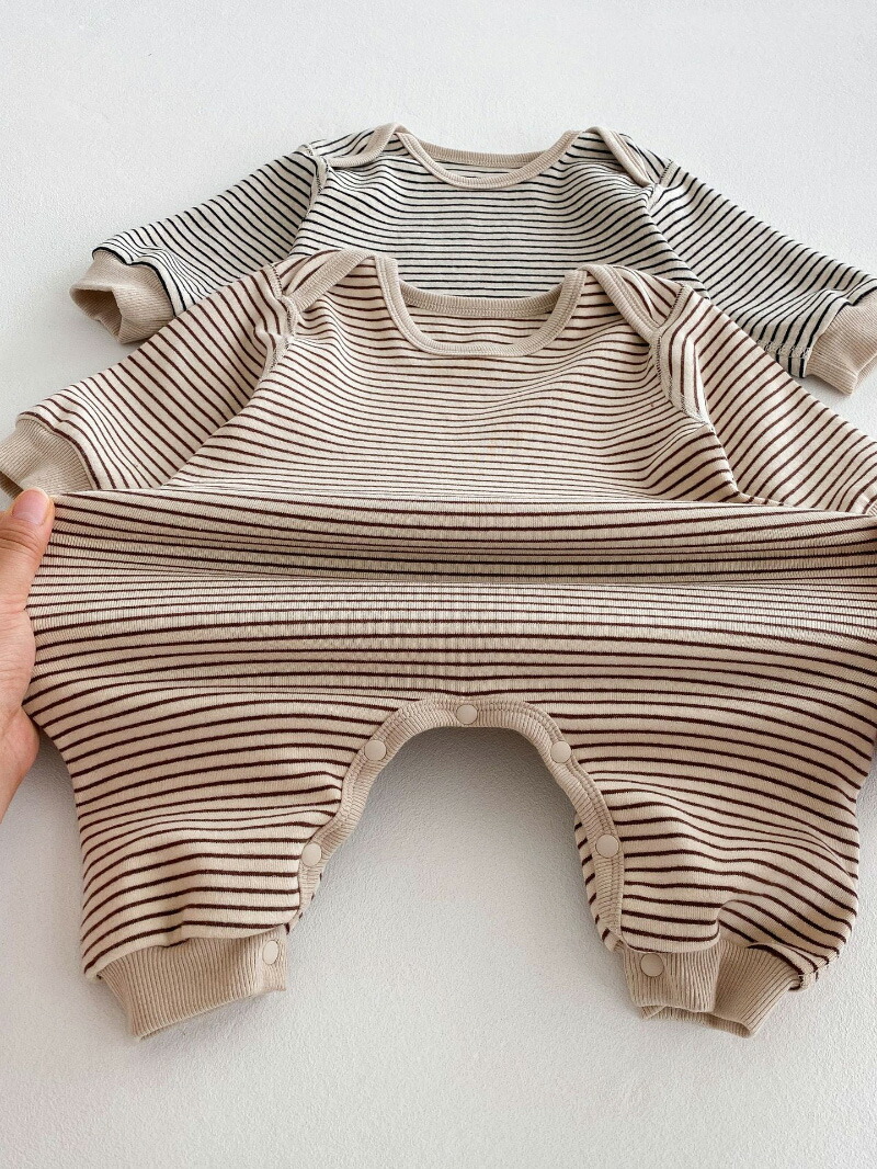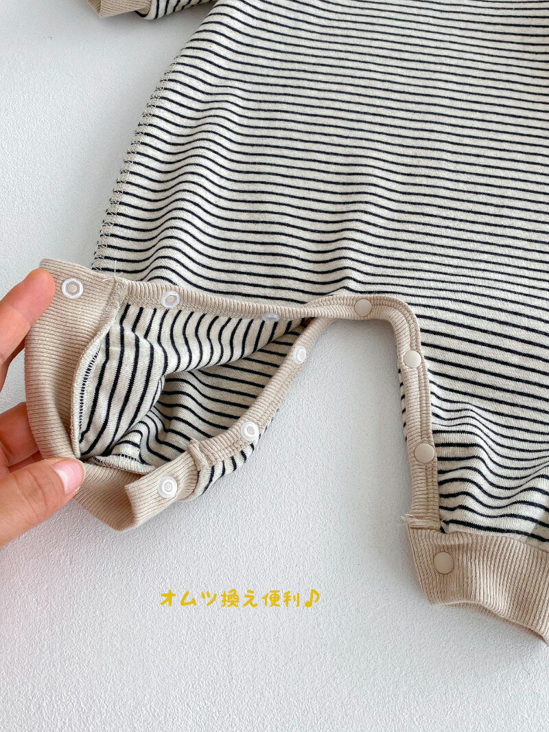ボーダー柄 ロンパース ベビー 長袖 キッズ ベビー マタニティ 人気 コーヒー色 ブラック 66cm 73cm 80cm 90cm