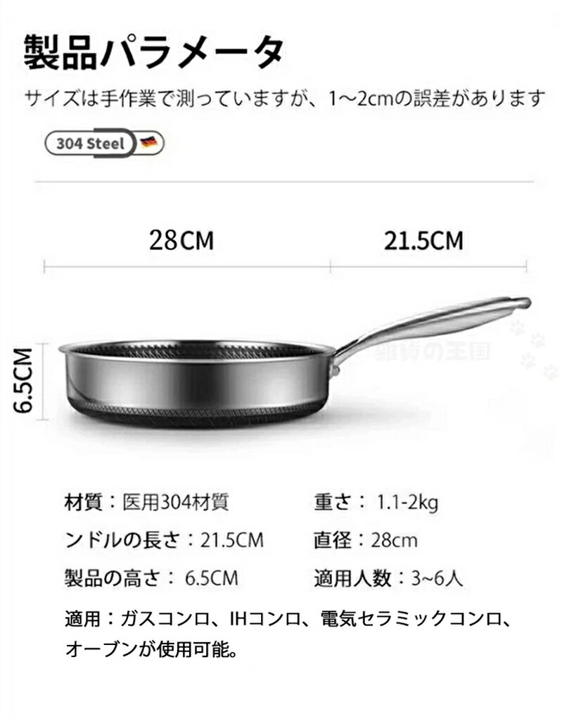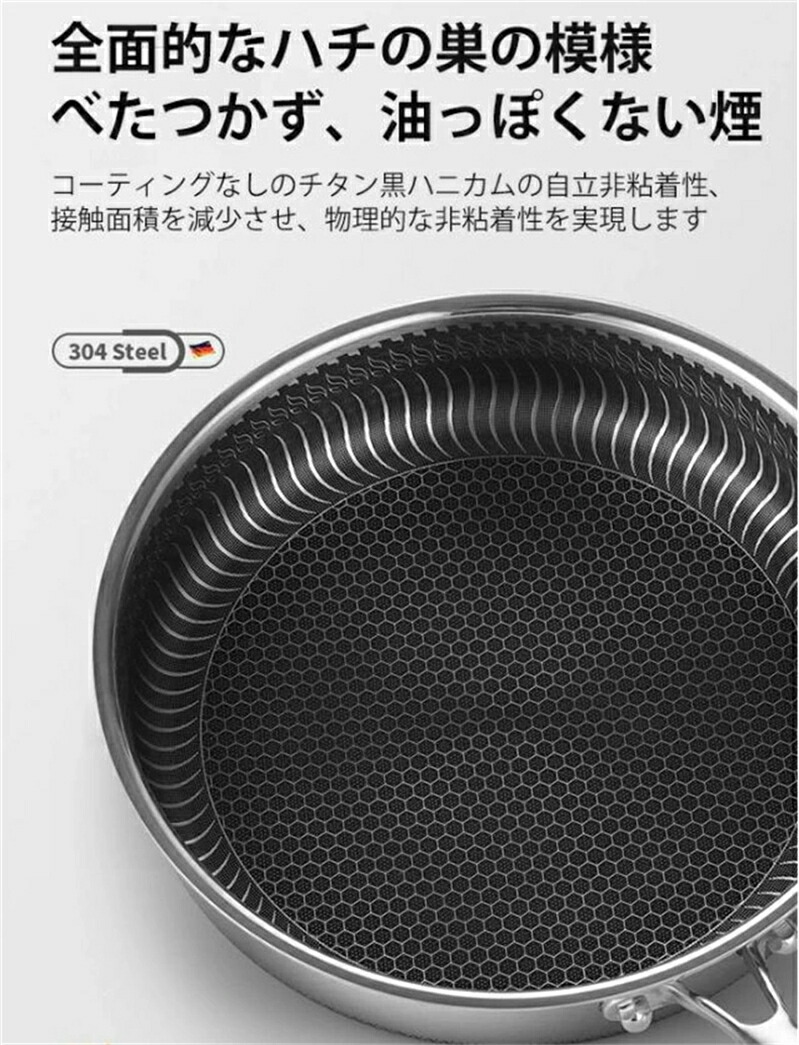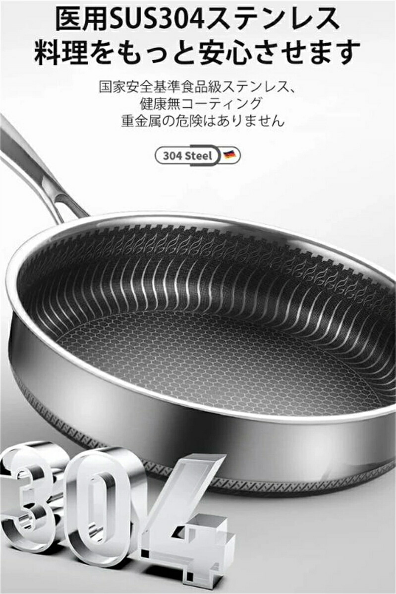 焦げ付き防止304ステンレス鋼フライパ