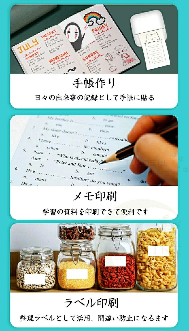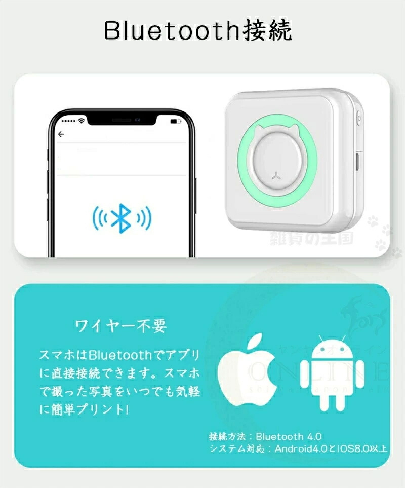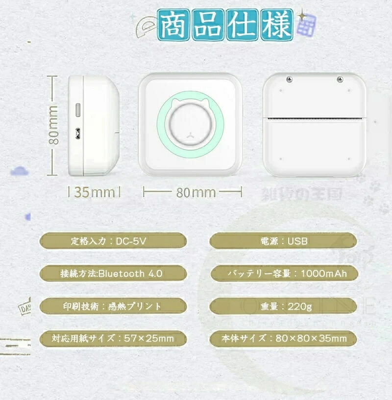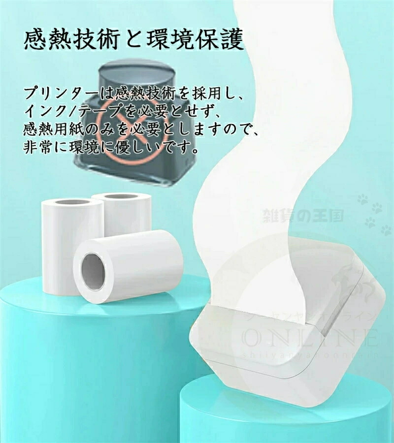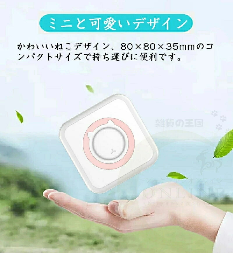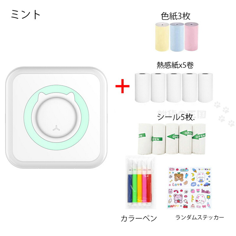 熱感紙5巻 小型 プリンター 持ち運び ピンク ミント
