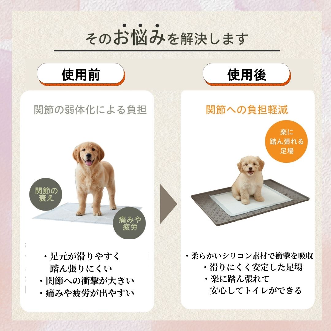 滑りにくく、ペットの足元をしっかり支える設計。尿や水がこぼれても防水・防汚仕様でお手入れが簡単です。