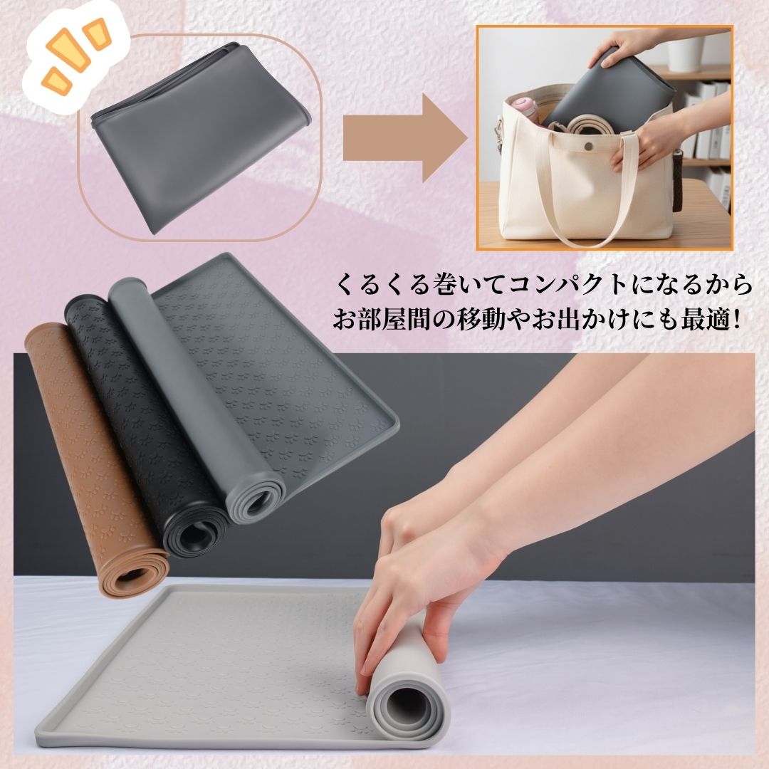 柔らかく軽量なので丸めて収納でき、旅行や外出先にも便利です。