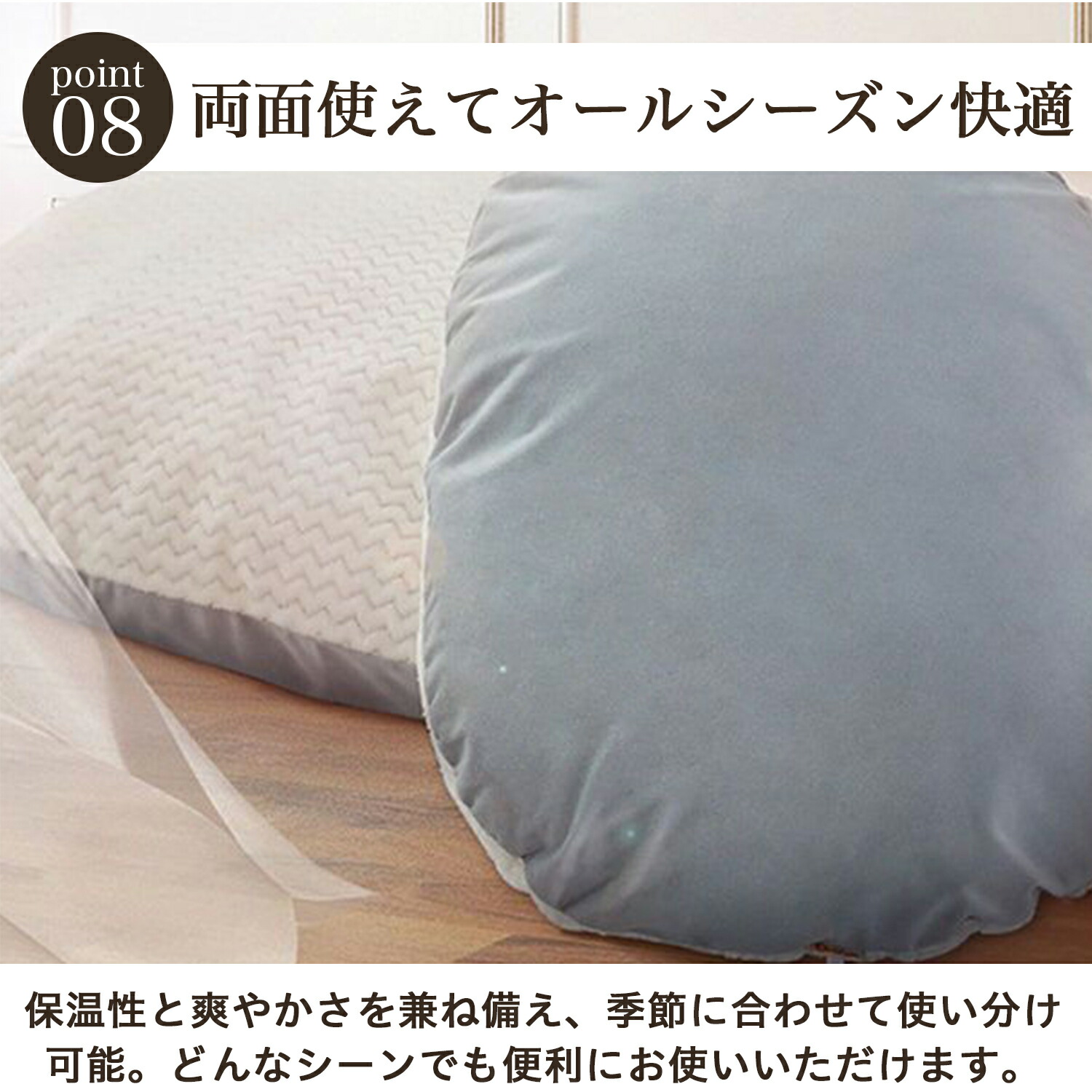 ・肌触りの良い素材を使用し、夏も冬も快適に過ごせる設計。