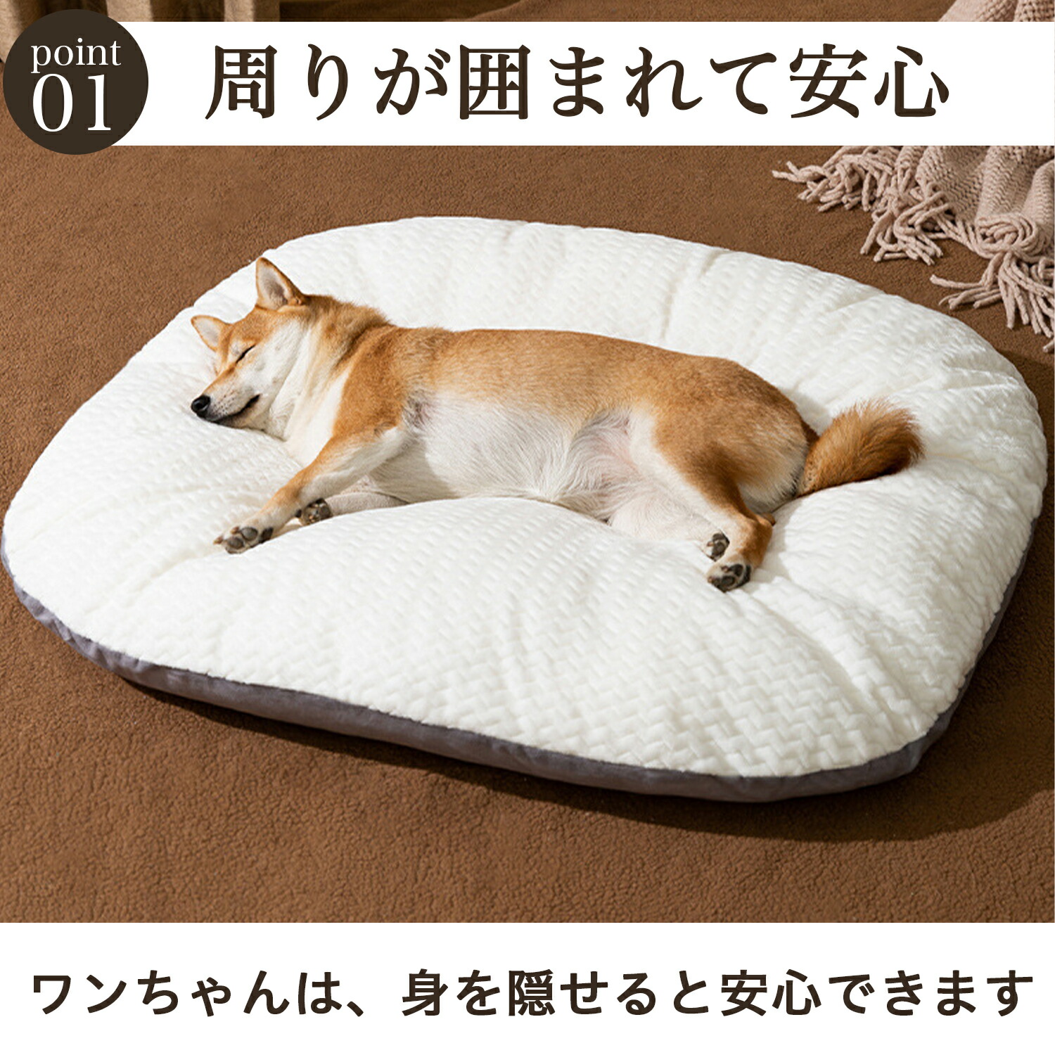 ・愛犬・愛猫が安心して眠れるふんわり柔らかなペットベッドです。