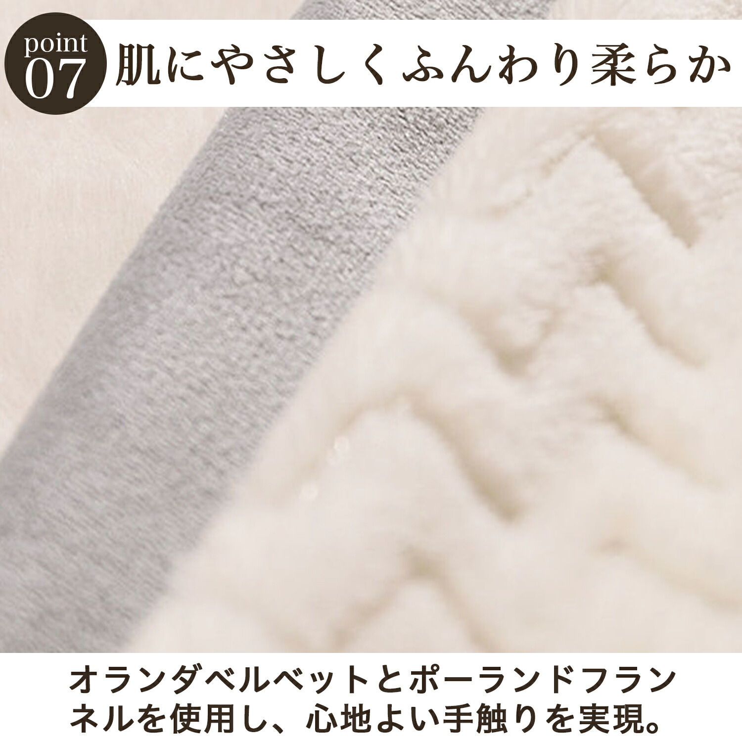 └ 肌触りが非常に滑らかでふんわり感が強い/毛玉ができにくく、抜け毛・色落ちが少ない/軽量で保温性が高い/低刺激性(敏感肌やペットの皮膚にもやさしい)