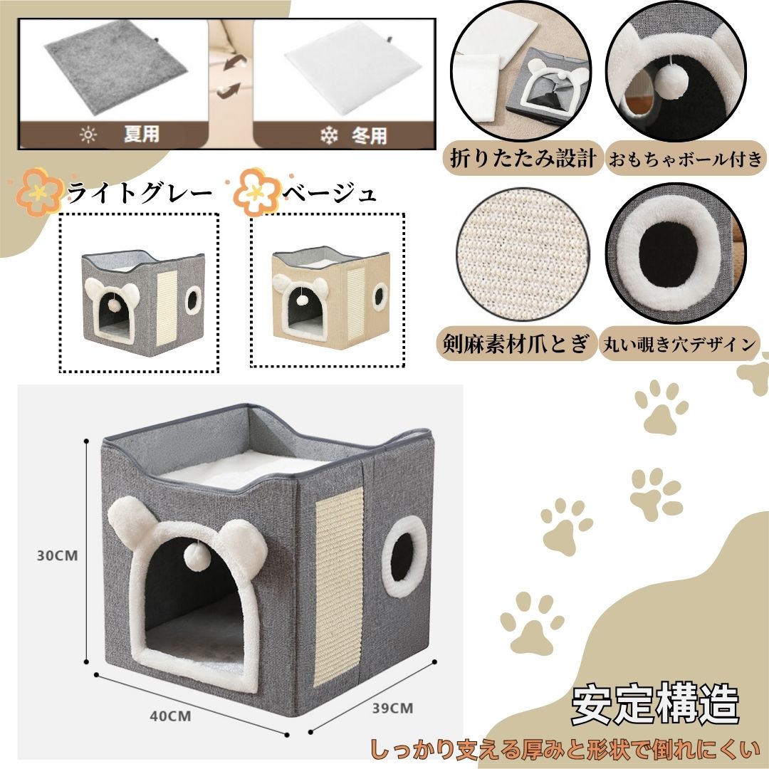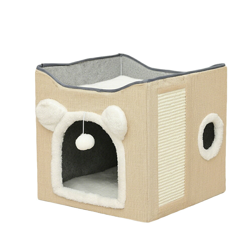 バーマン Birman 猫ハウス あったかペットベッド 冬用 保温モコモコ 寝床 爪とぎ付き 多頭飼いOK 折りたたみ収納可能 屋根なしボックス型 小型犬兼用 おしゃれインテリア キャッ 猫用ベッド