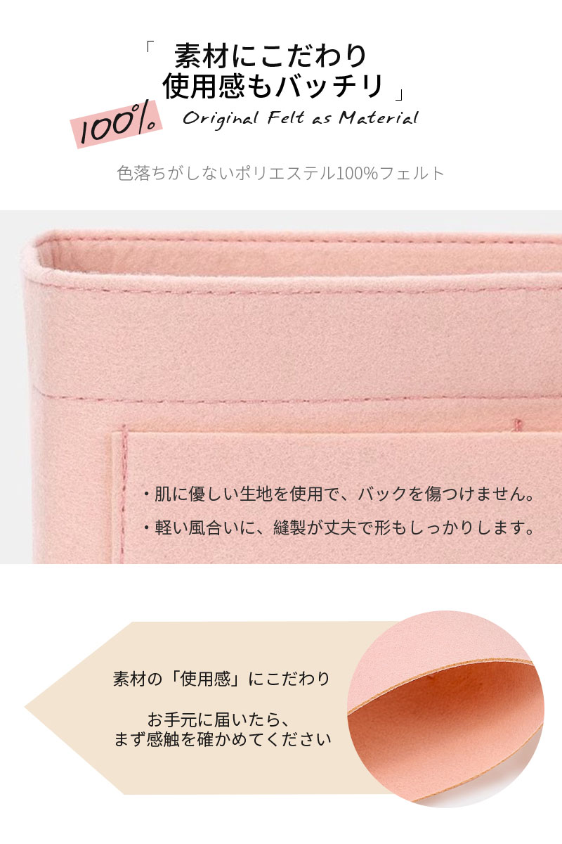 他のバックインバックと違うのは、重さが超軽い~ことです。高級フェルトを使用してますので、肌触りも滑らかで皮製品などに対しても傷がつきません。しっかりとした作りなのでバックの型崩れも予防できます。バッグを替えても、このインナーごと移していただくことで、小物も忘れることなく持ち運びができます、ススメの高級バックインバックです。