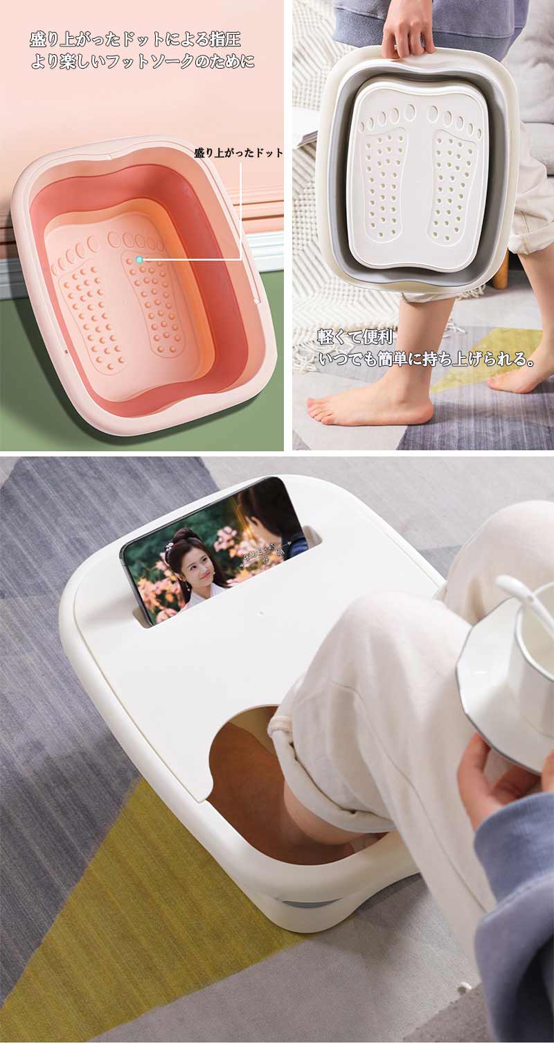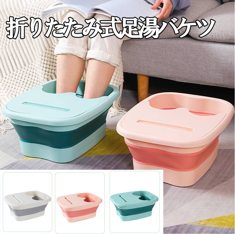 足湯 バケツ 脚 折り畳み 蓋あり 丈 ホワイト グリーン ピンク