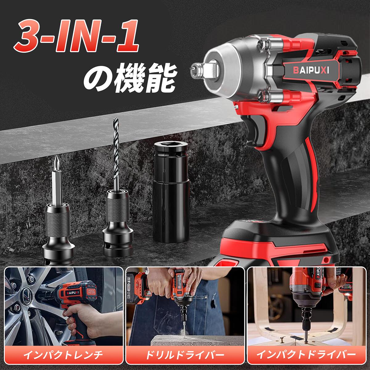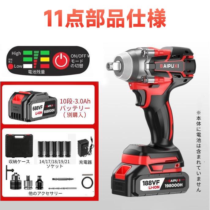 超強力トルク インパクトレンチ タイヤ 本体のみ(バッテリーなし) 本体+バッテリー*1+充電器*1 本体+バッテリー*2+充電器*1 本体+11点のパーツ 本体+25点のパーツ