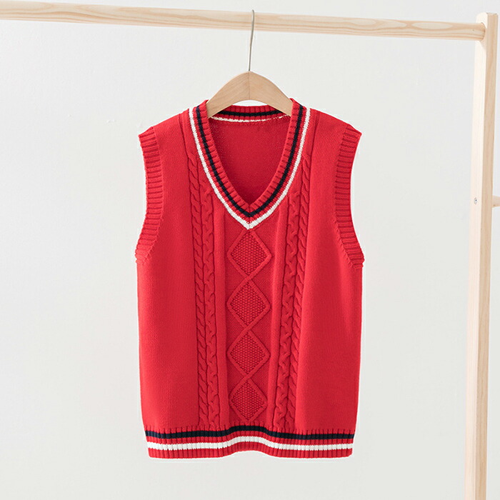 男女兼用 ニットベスト キッズ ジュニア コーデ Vネック トップス ニット フォーマルベスト 重ね着 綿 秋物 冬物 学生 子供服 ラインベスト 制服 学生服 高校 通学 学院風 セータ 中学