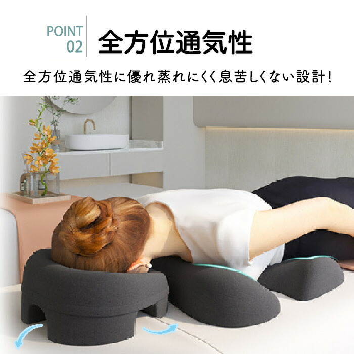 顔枕は通気性に優れ息苦しくなく顔に赤い痕が残らない!肌に優しく低反発設計!