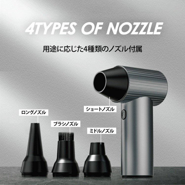 電動 エアブロワー 超強力 バイオレント ハンディ エアダスター 充電式 金属ボディー アルミ ミニ ブロワー エアーダスター 4種類ノズル付 洗車 ハイパ