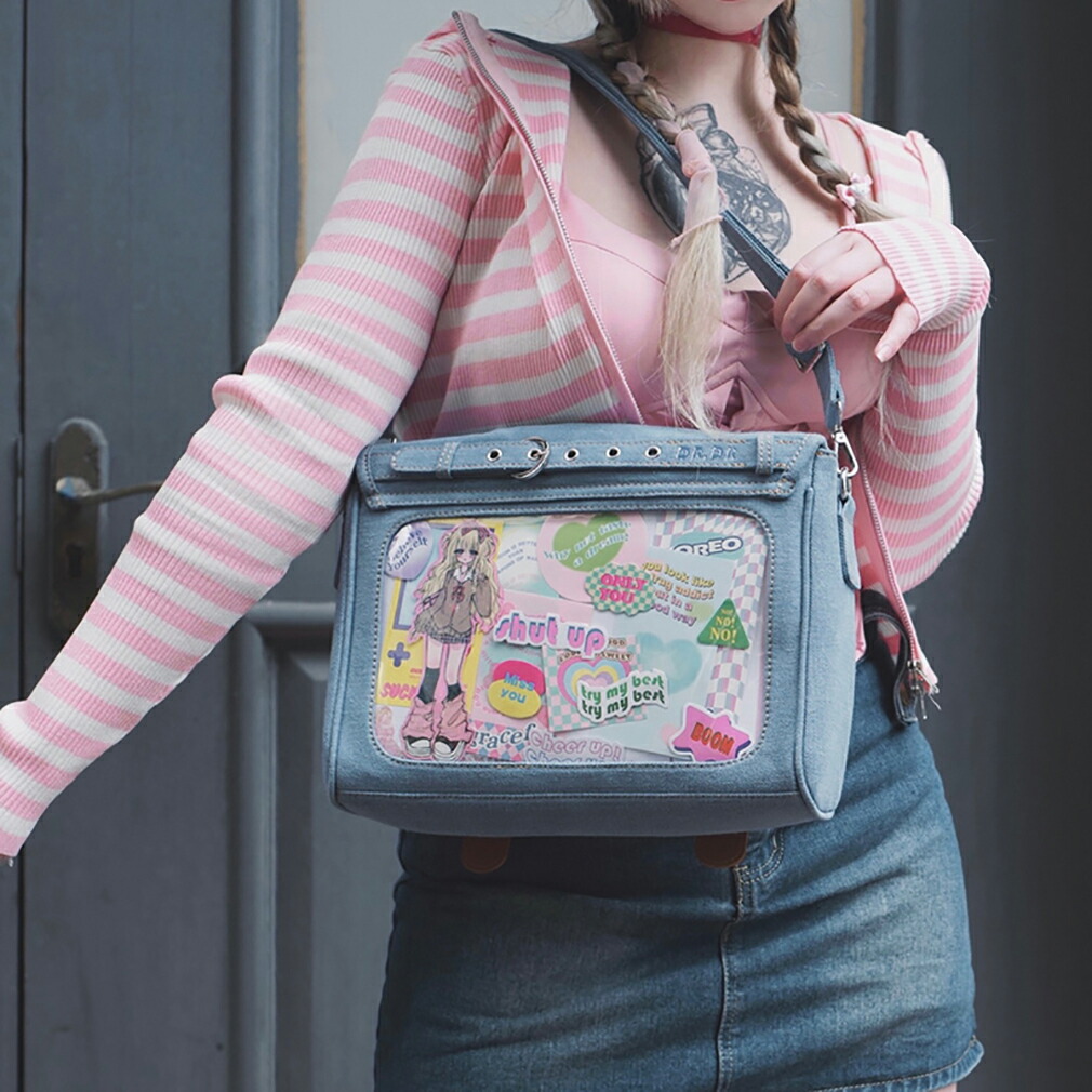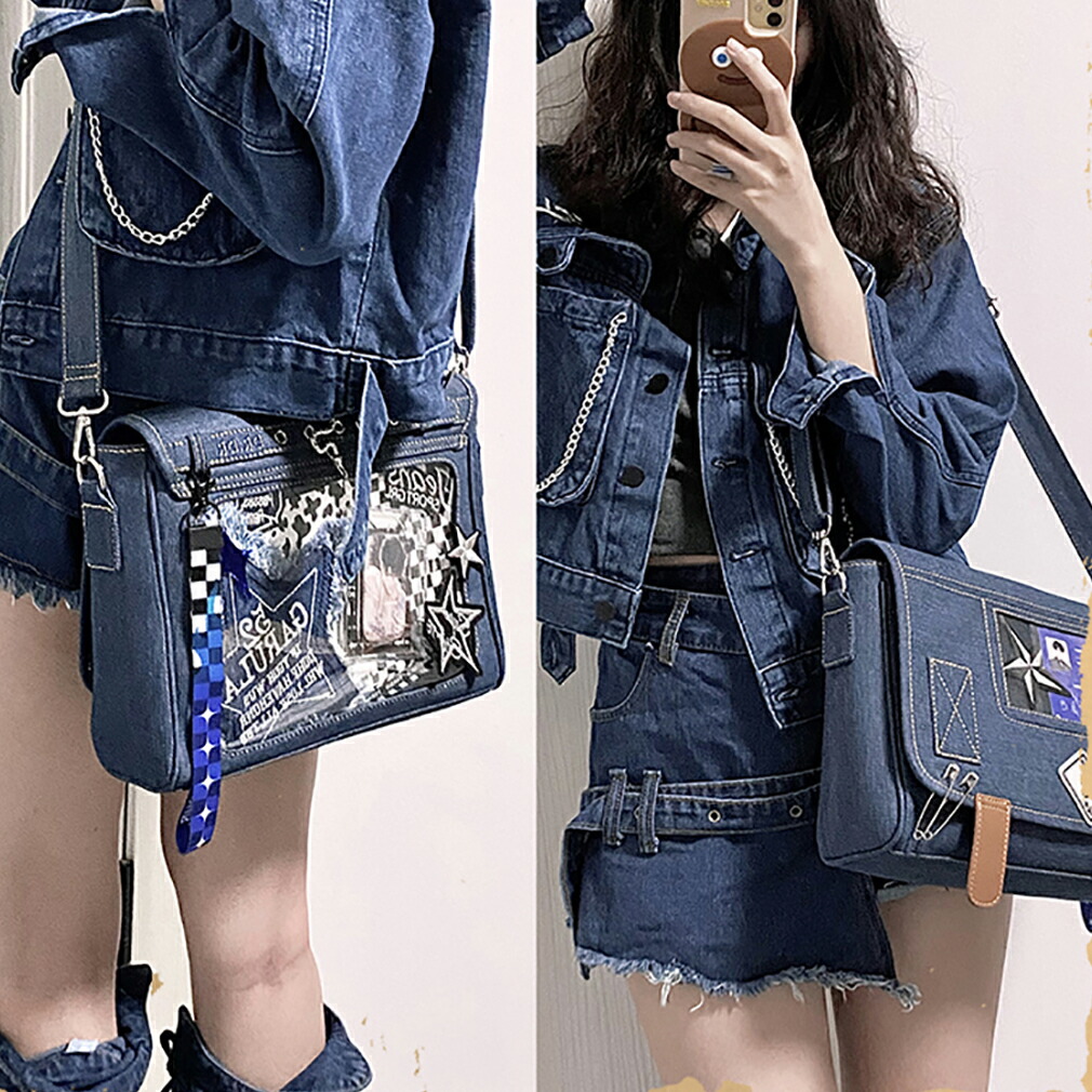 痛バッグ デニム風痛バ トートバッグ バッグ レディースバッグ トートバッグ 早い者勝ち ブルー ダークブルー ブラック