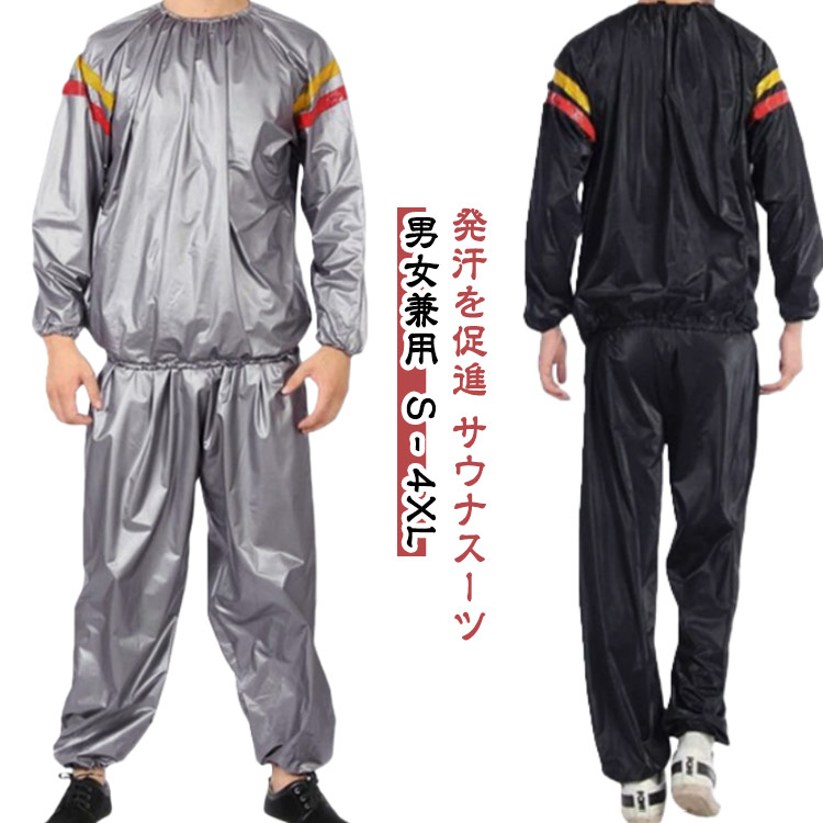 上下セット スーツ サウナスーツ サウ フィットネス トレーニング ウェア サウナスーツ 超目玉商品 グレー ブラック グレーライン入り ブラックライン入り S M L XL 2XL 3XL 4XL