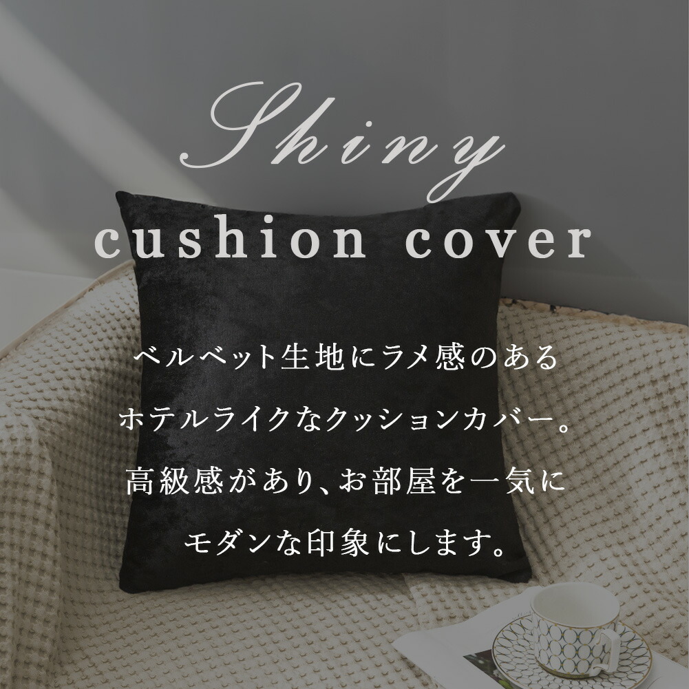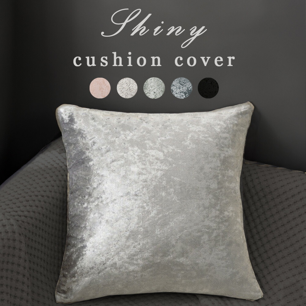 クッションカバー 45×45cm おしゃれ かわいい シャイニー 高級感 モダン 光沢 ベルベット ホテルライク グレー ブラック ピンク インテリア 結婚祝い クッション カバー 正方形 新築祝い
