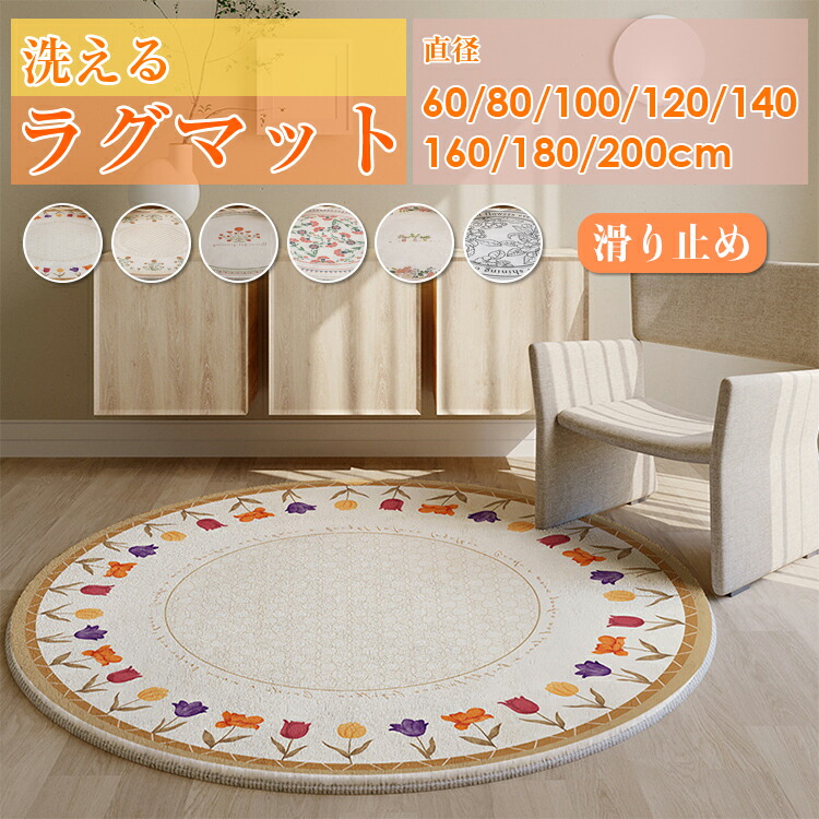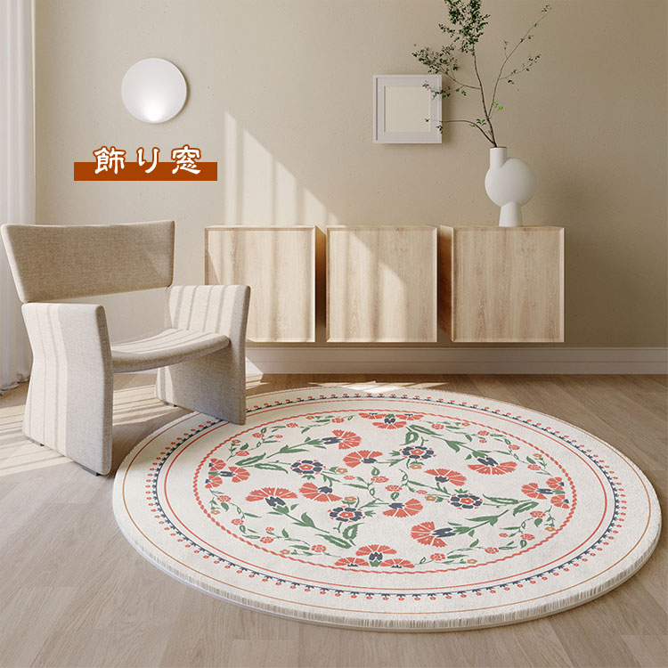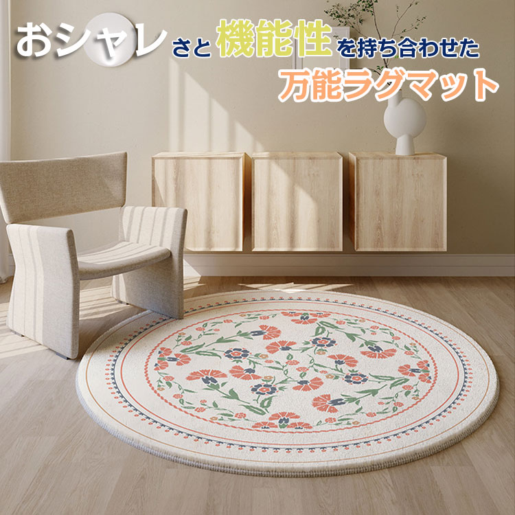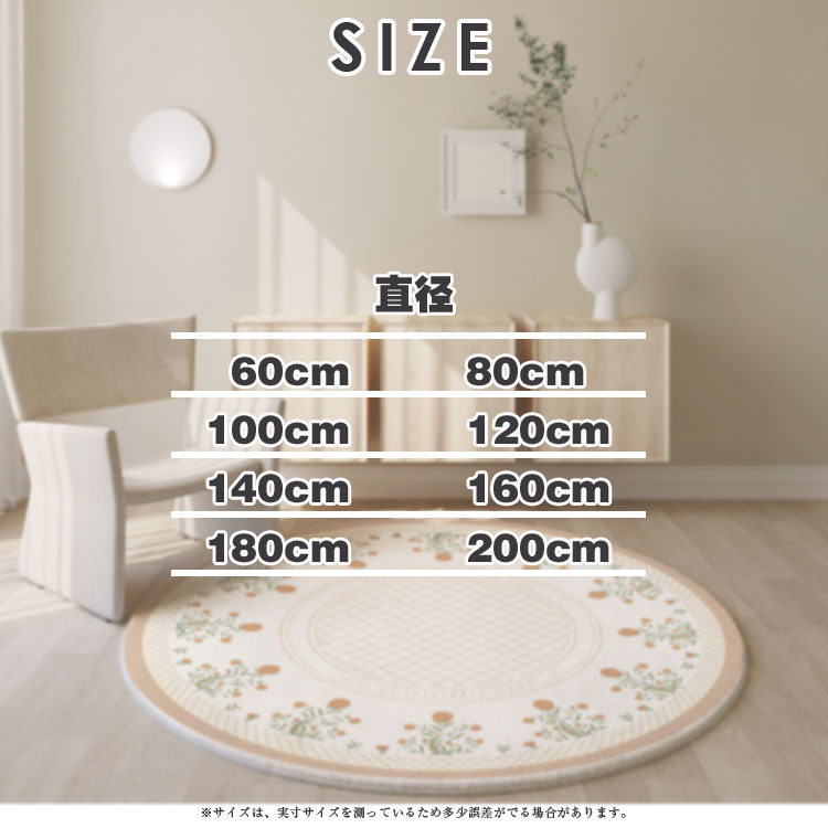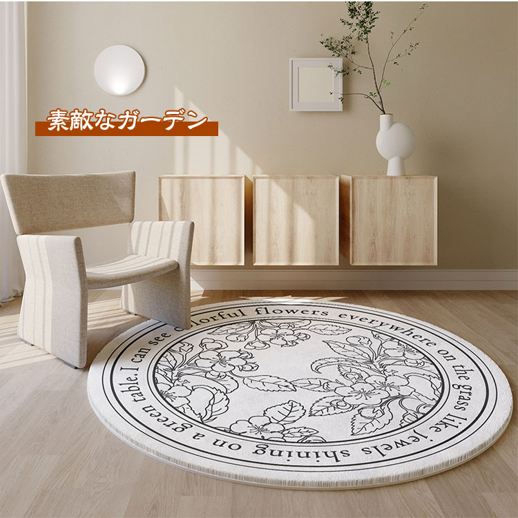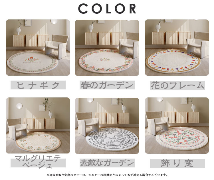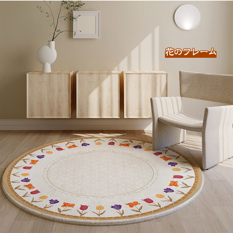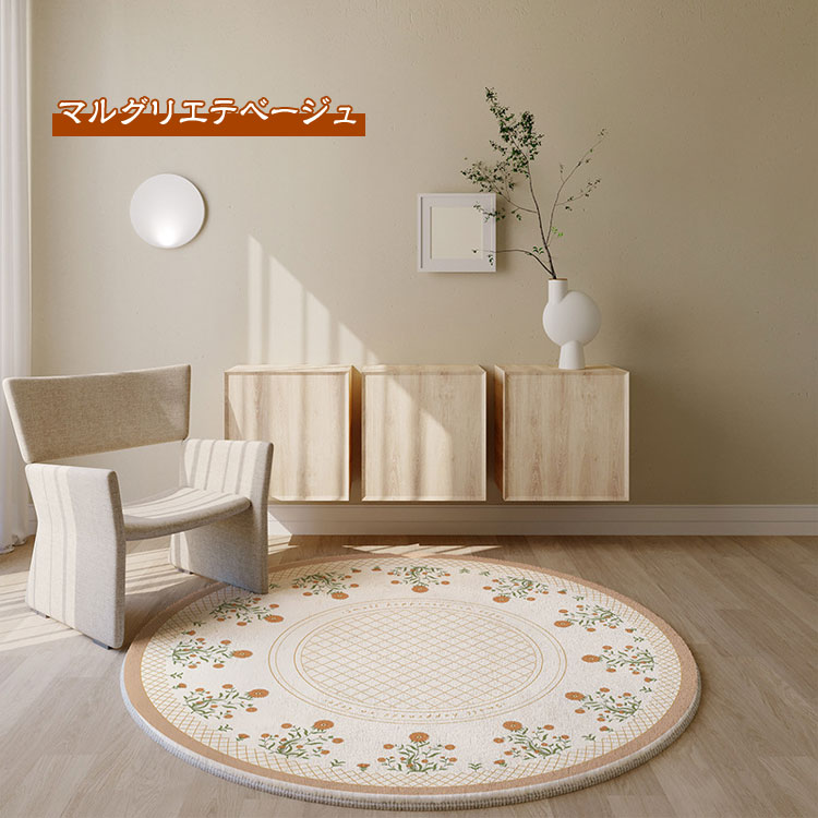 ラグマット おしゃれ 北欧 円形 洗え ヒナギク 春のガーデン 花のフレーム マルグリエテベージュ 素敵なガーデン 飾り窓 直径40cm 直径50cm 直径60cm 直径80cm 直径100cm 直径120cm 直径140cm 直径160cm 直径180cm 直径200cm