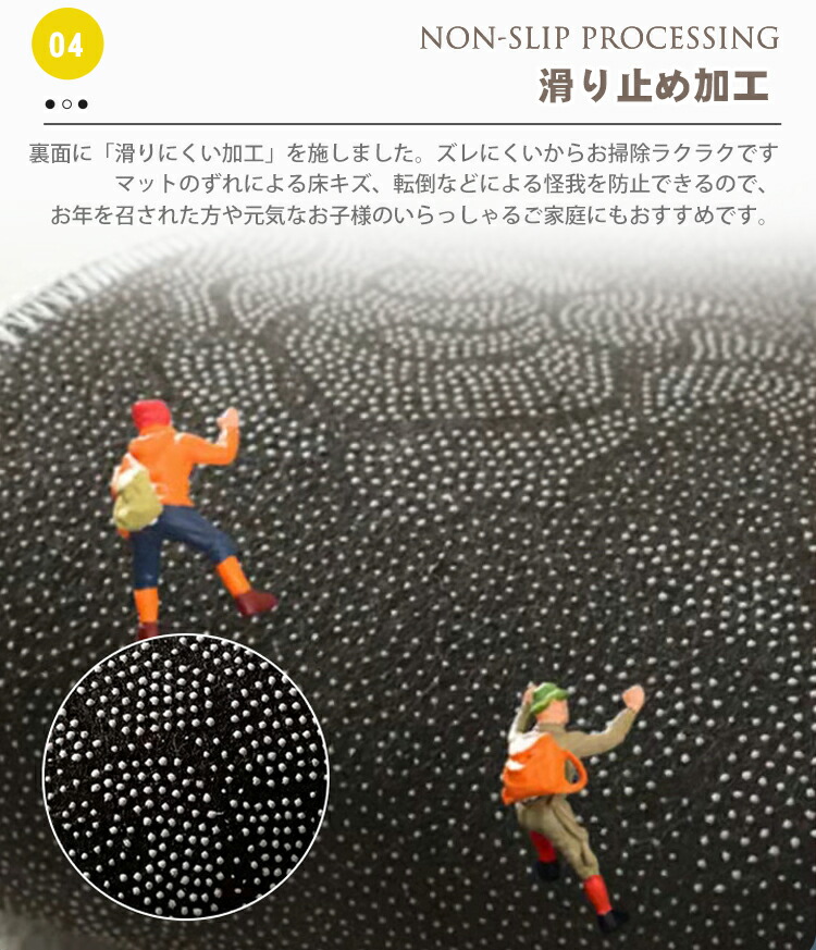 程よいクッション性があり、フローリングの底付感を軽減いたします。