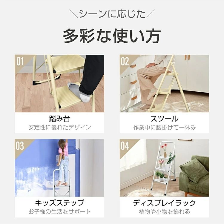 脚立 2段 踏み台 折りたたみ式 2段 ブラック ホワイト グレー ベージュ オフホワイト