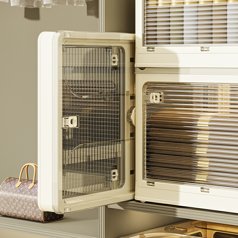 ・物の出し入れは上だけではなく、左右前後も扉付き、ボックスを積み重ねる状態にも楽に横から物を取り出して、伝統的な収納ボックスに比べてもっと便利で、機能性が向上します。
