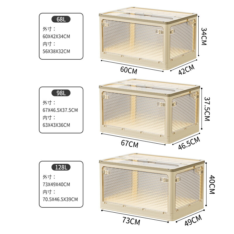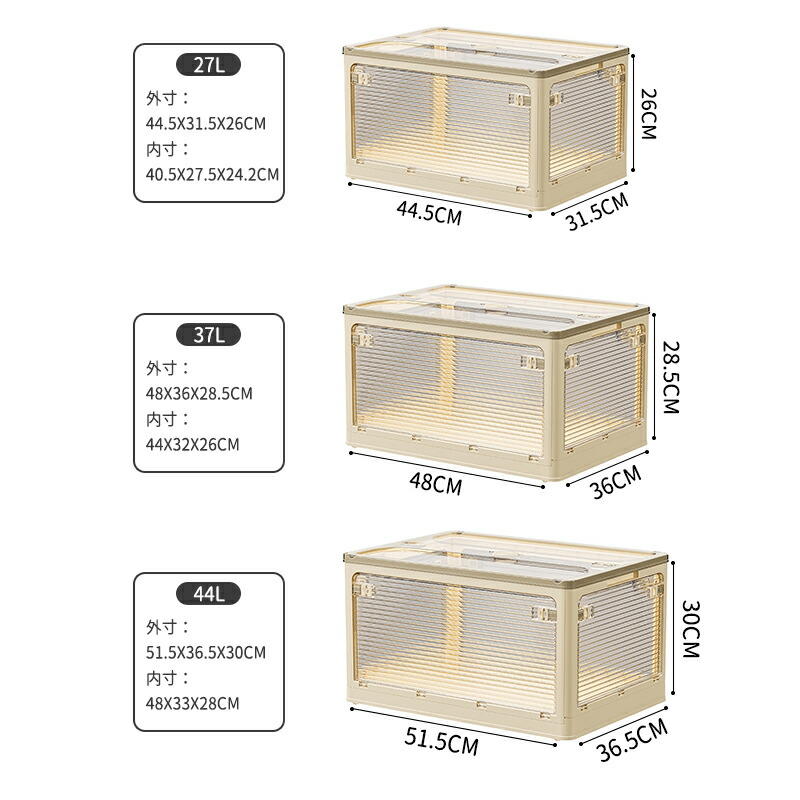 収納ボックス 5面開閉 6サイズ 折り ベージュ ホワイト 21L-(40.5*29*24cm) 27L-(44.5*31.5*26cm) 30L-(47.5*35.5*24cm) 37L-(48*36*28.5cm) 44L-(51.5*36*30cm) 68L-(60*42*33.5cm)