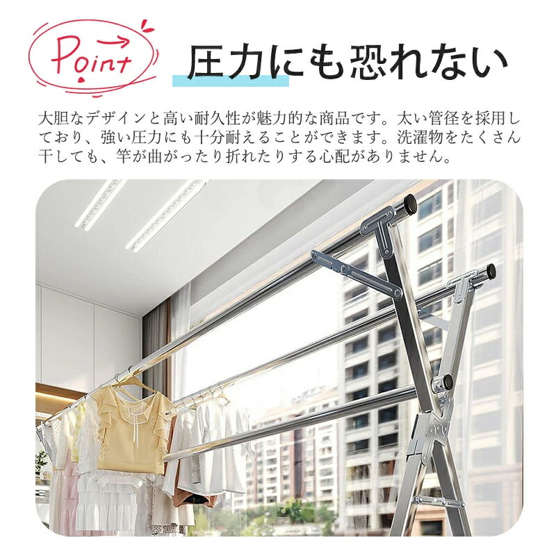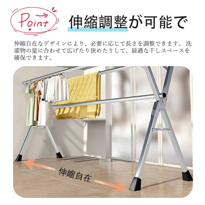 物干し ステンレス製 伸縮式多機能布団 洗濯用品 物干しスタンド 新登場! ダブルバー 三本バー