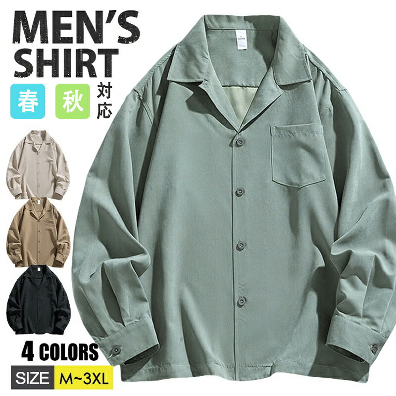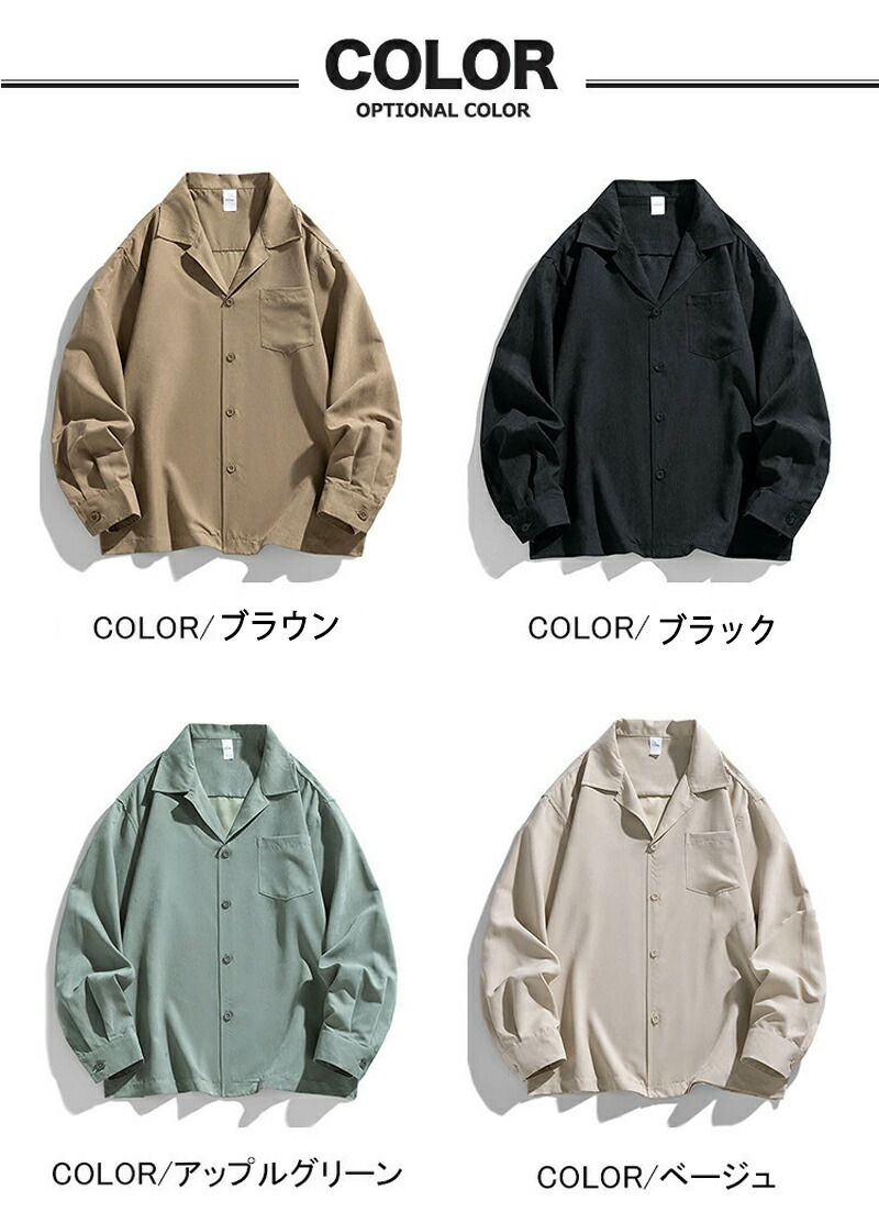 シャツ メンズ オープンカラー シャツ メンズファッション 早い者勝ち ブラウン ブラック アップルグリーン ベージュ M L XL 2XL 3XL
