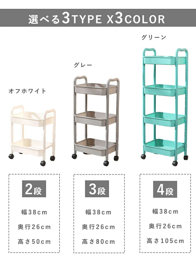 キッチンワゴン キャスター付き キッチ オフホワイト グレー グリーン 2段 3段 4段