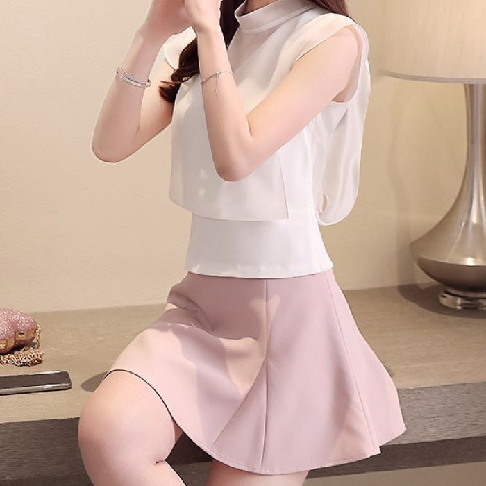 シアースリーブ ドッキングシャツ ボウタイシャツブラウス