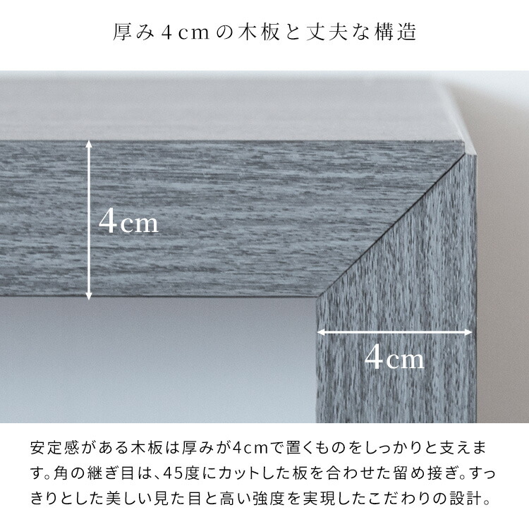 シンプルなデザインはデスクだけでなくテーブル、カウンターなどお家の色々な場所でマルチに活躍します。厚み4cmの頑丈な設計でパソコンやプリンターも置けるので、テレワークや在宅勤務の方にも安心してお使いいただけます。ナチュラルの優しい色合いがお部屋を明るく演出してくれます。幅と奥行きが異なる3サイズから、お部屋の広さや用途に合わせてお選びいただけます。