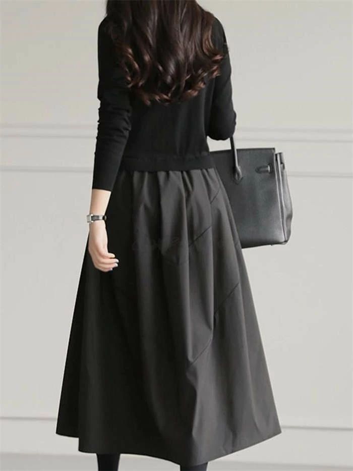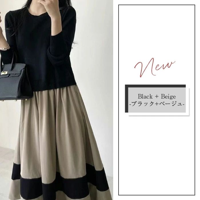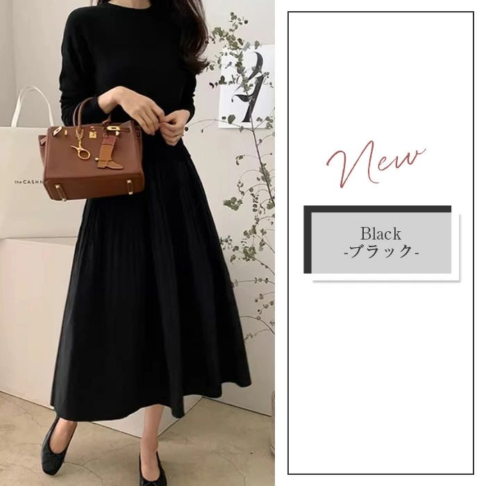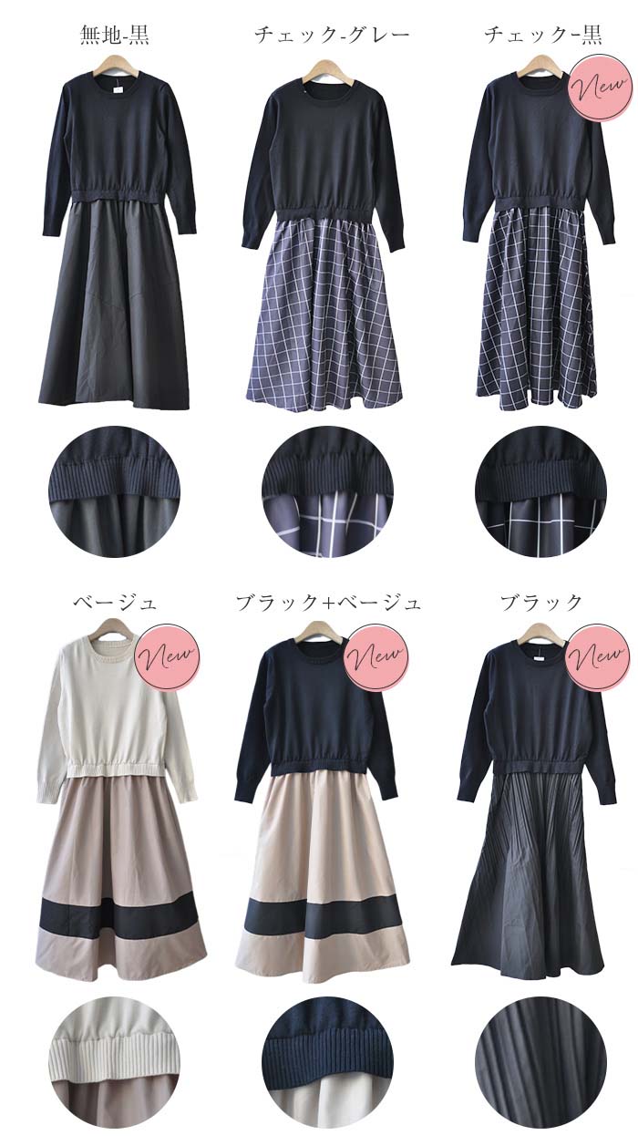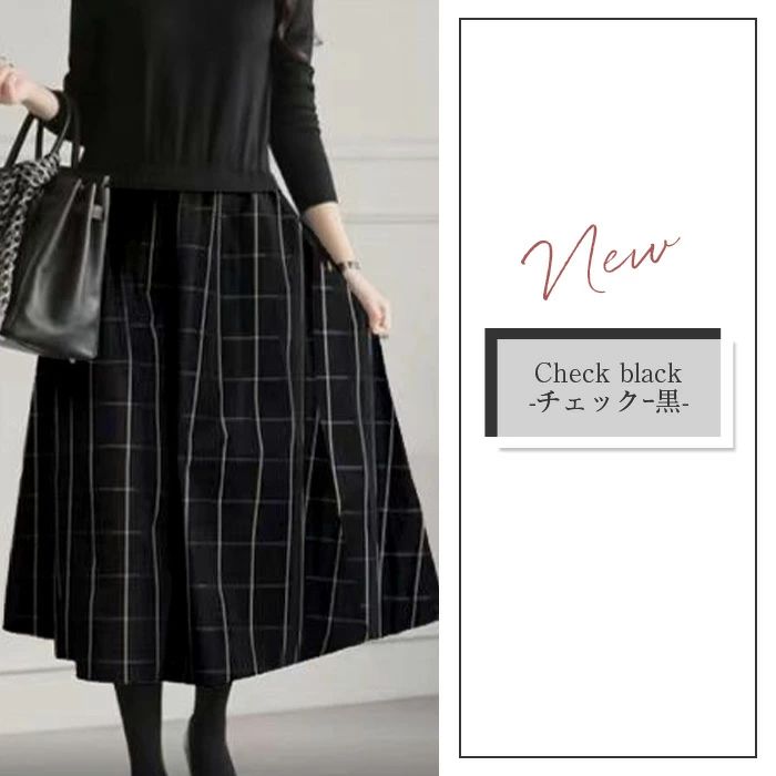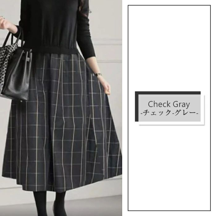 ワンピース きれいめ 秋冬 ロング 春 ワンピース 続々登場 無地-黒 チェック-グレー (new)ブラック+ベージュ (new)ベージュ (new)チェックー黒 (new)ブラック 【新色】ブラック(ウエスト調整可) 【新色】グレー(ウエスト調整可)