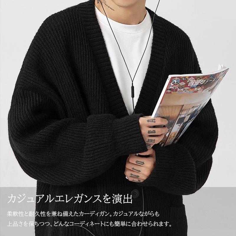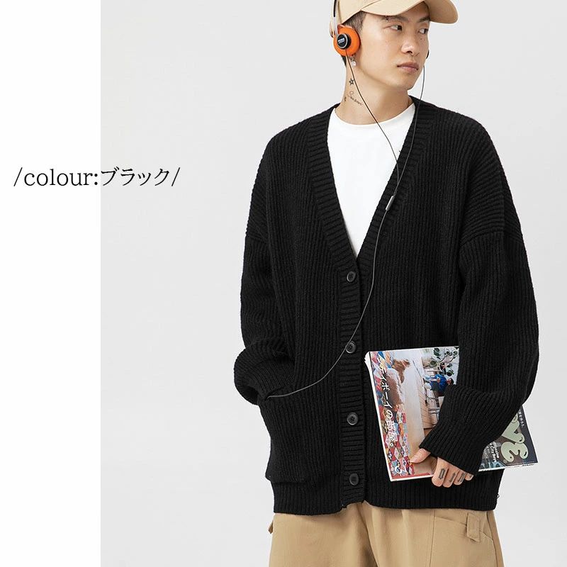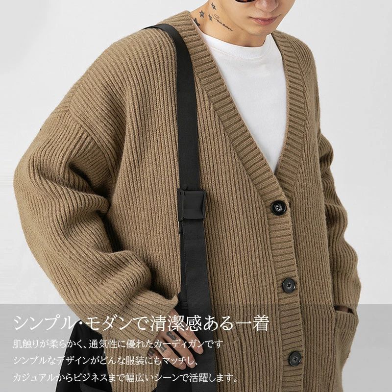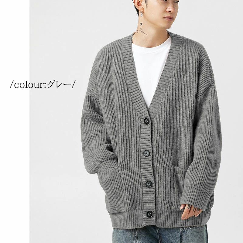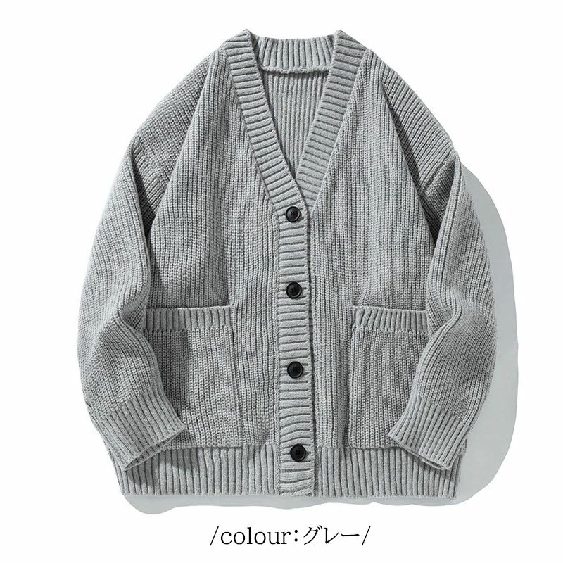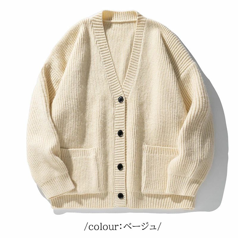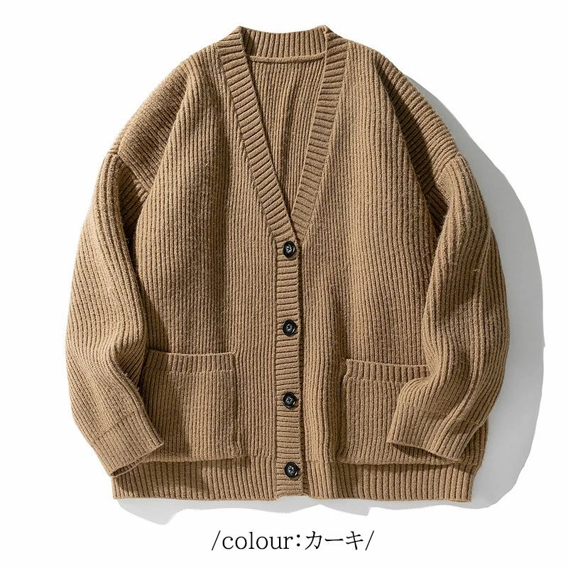 ン カーデ 厚手 ざっくり フィッシャ トップス カーディガン 新作 グレー カーキ ベージュ ブラック S M L XL 2XL 3XL