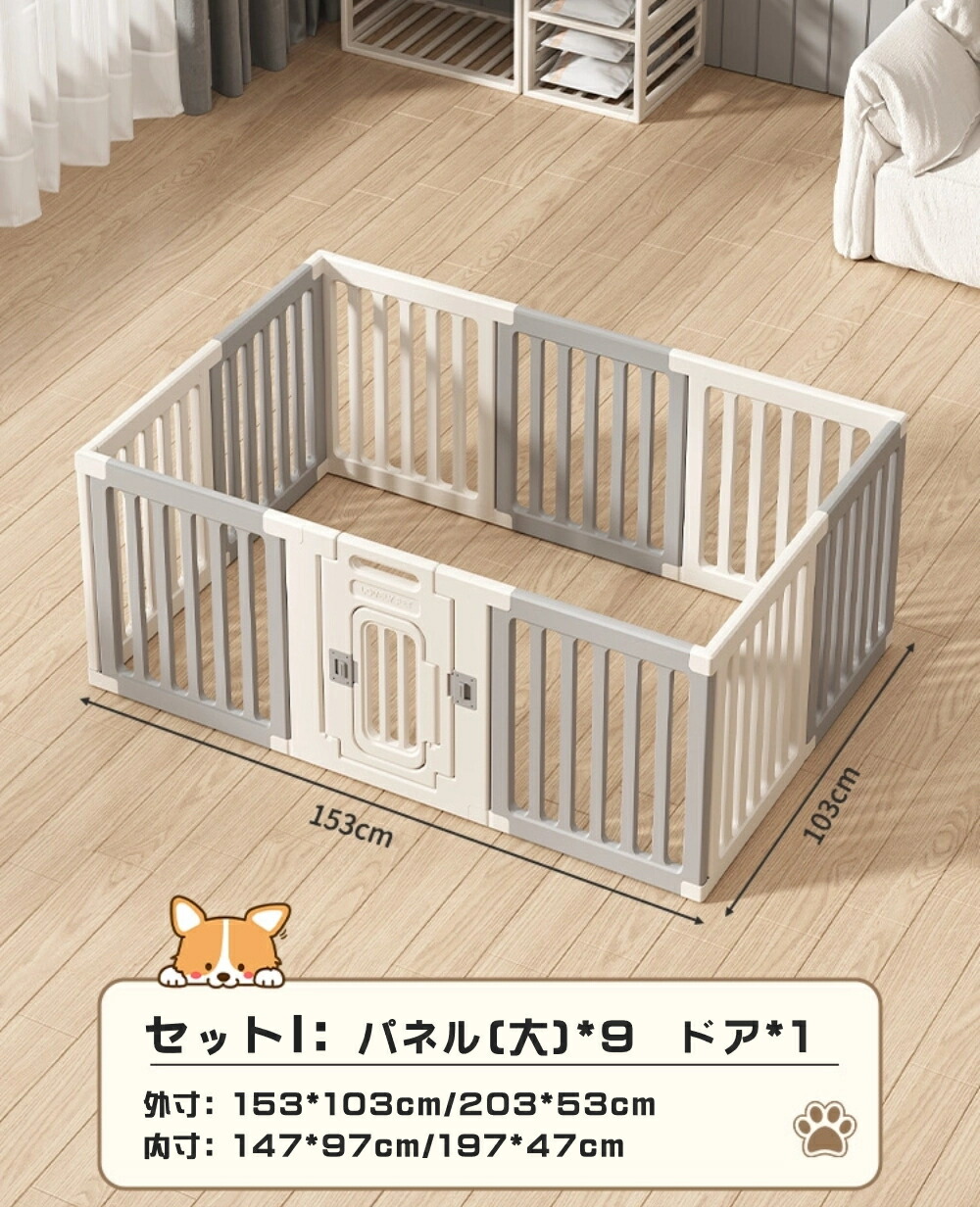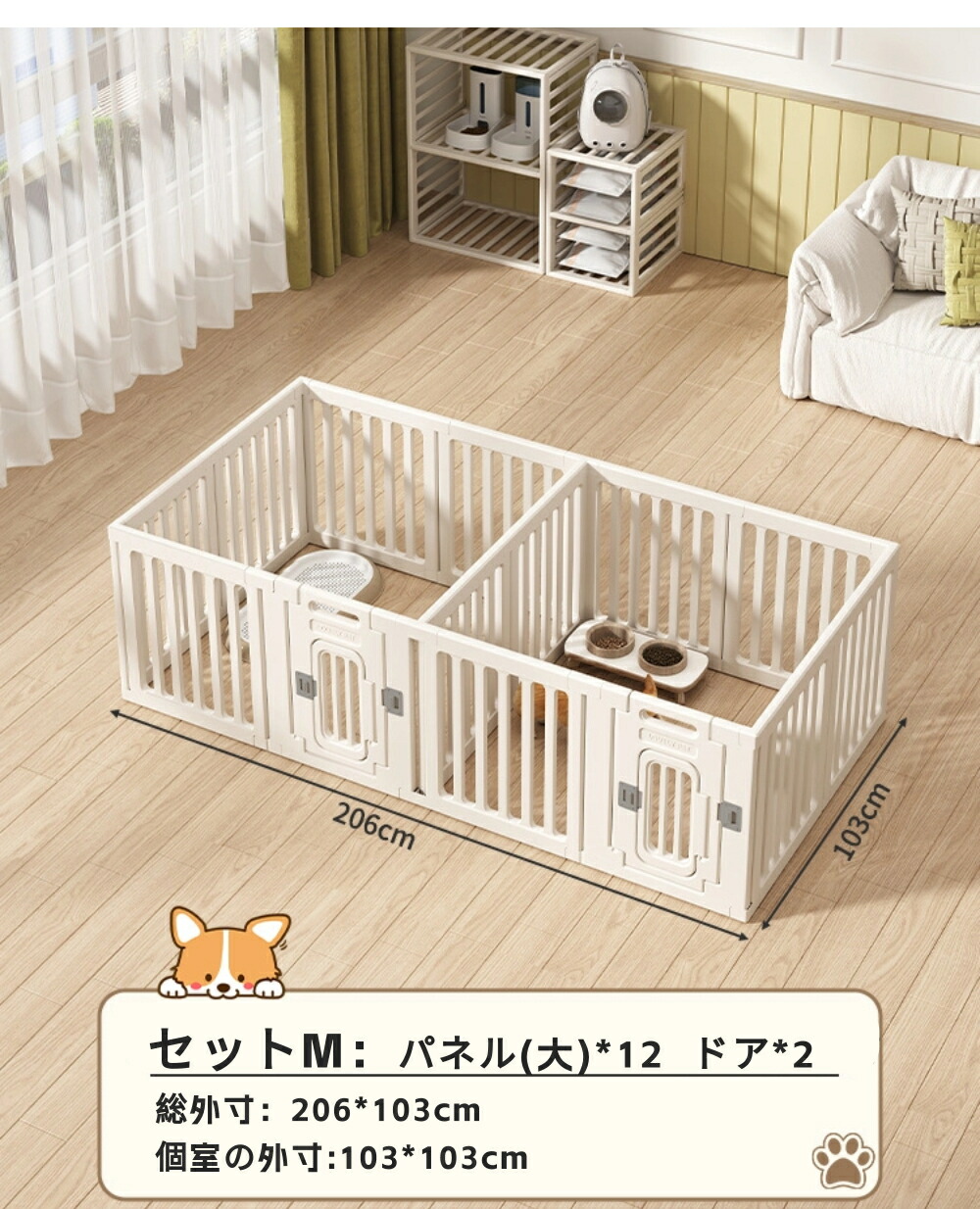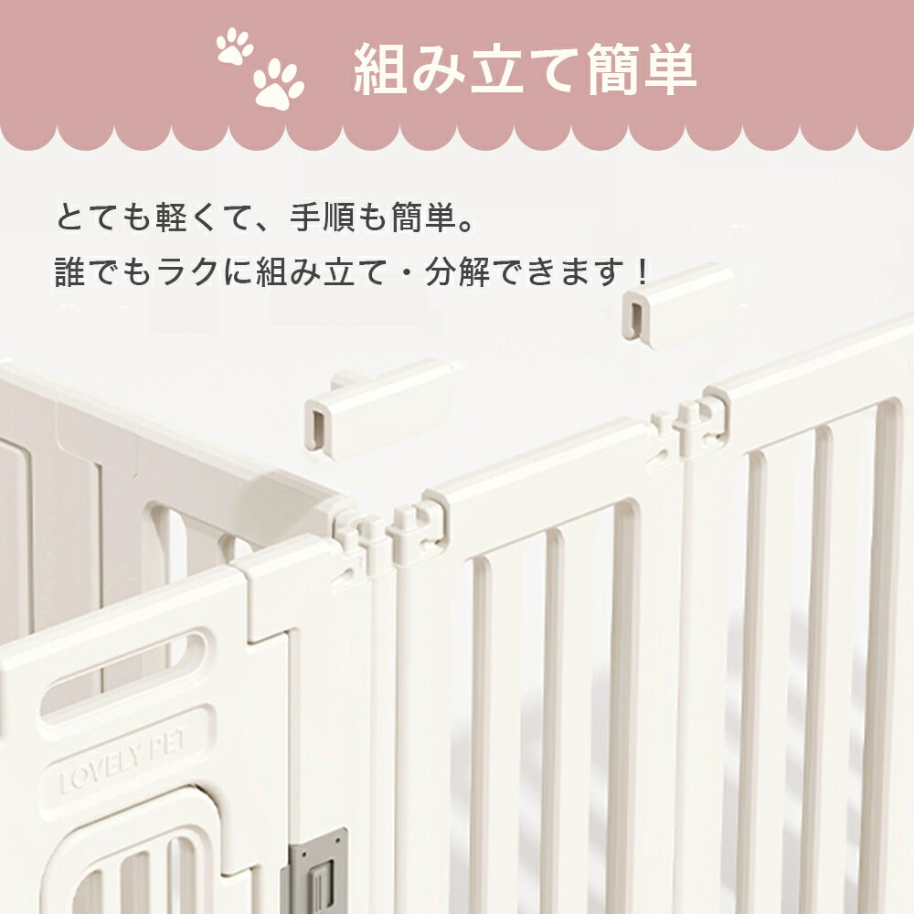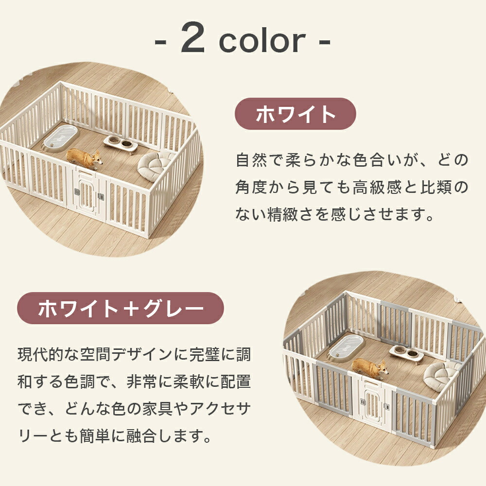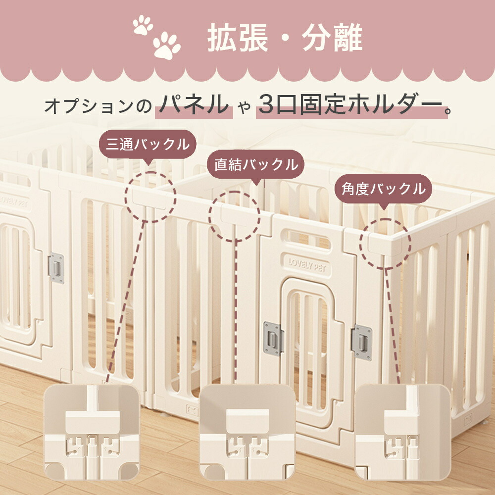 ・自由に組み合わせ可能なパネルは、小型犬から中型犬までのサイズに対応し、ペットの成長や活動量に合わせて最適な空間を作ることができます。